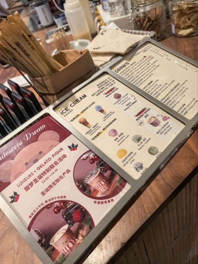 fly_me_to_the_moon先前去幸福里路过Luneurs,人少货全,要啥有啥,可惜吃不下…… 没想到环贸店小了一丢丢,位子也不舒服,居然跑了两次没吃到蛋筒,生气了!还是七夕节,哼! iapmL5 座位很少,而且坐着也不舒服。提供免费茶水。 和闺蜜们住在马勒别墅,晚上特地来吃点甜的,结果好多都售罄了,冰淇淋只剩下两种口味,蛋筒也没有了。可是蛋筒是冰淇淋的灵魂啊!一气之下不吃了,第二天下午再来! 结果第二天下午还是没有蛋筒!我的天哪!而且人超级多!最后三个人还是决定吃吧…… 我还特地问了店员是不是我们来得不够早,所以没蛋筒,结果被告知早上连焦糖海盐这个口味都没有,我也是醉了…… 这家分店生意这么好,为啥就不能多备点呢?
