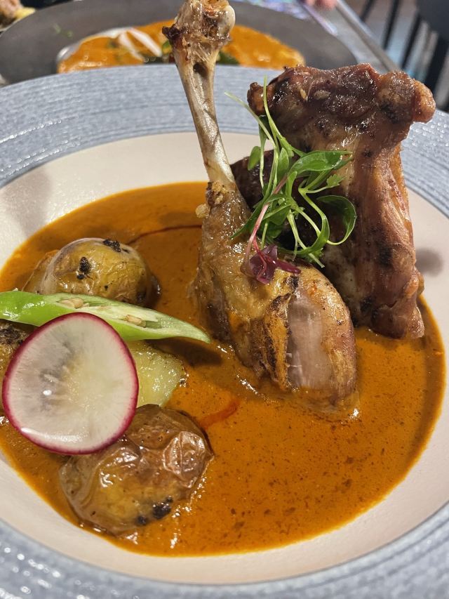 Khan ChachaKhan Chacha 汗叔叔中东南亚料理(南京西路店)走一个~给服务点赞,服务有加分 点了两份68元单人午市套餐,一份另外加20元换成 网红印度大神球 网红印度大神球 不难吃也不好吃,余下很多,吃不惯,莫名甜 果阿海岸油封鸭腿 又干又硬,老到咬不动,不是正常的油封鸭腿,直接放弃…要么印度的油封鸭腿就是这个调调的? 芝土焗孢子甘蓝 有几个咬起来有大渣渣 苏打水Soda 怡泉的,店员有主动问要不要冰,服务还是不错滴~ 我点的上面几个没一个好吃的…… 小伙伴点了 南国鸡肉黄金角 椰香虾仁咖喱 古法印度飞饼 果冻红唇的小清新 暗黑路边烤鸡翅 送的