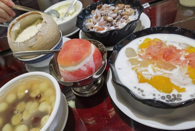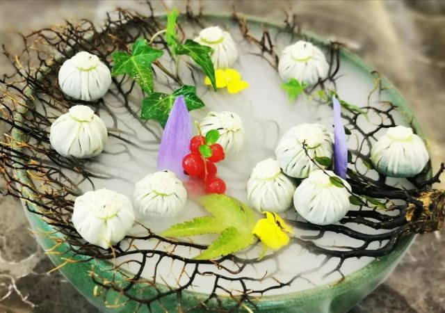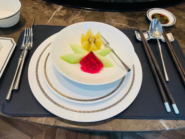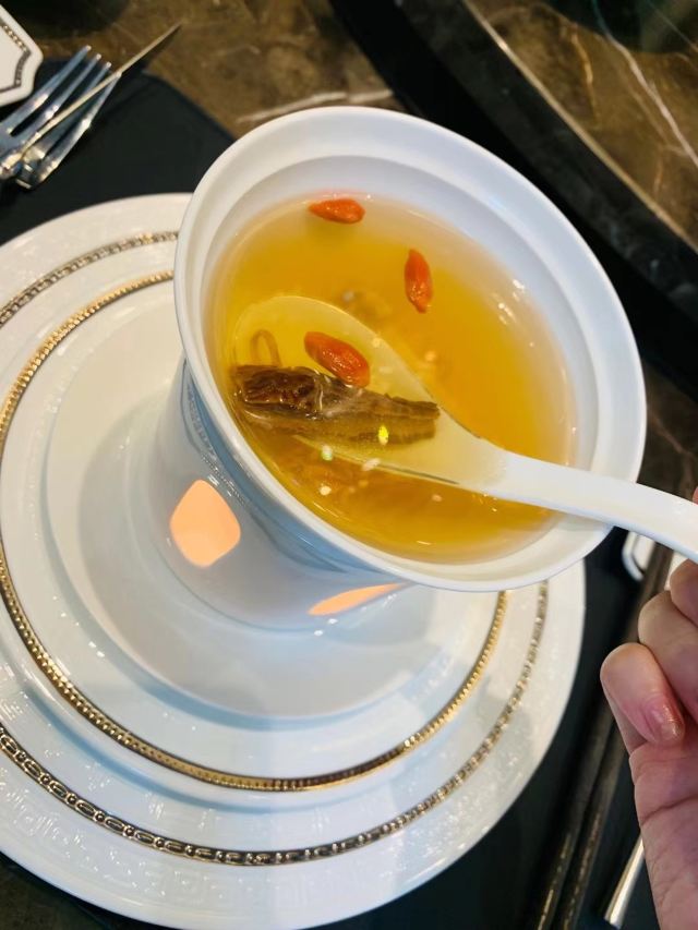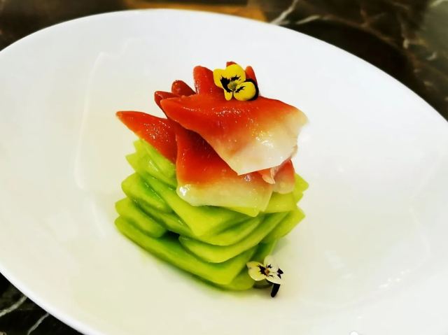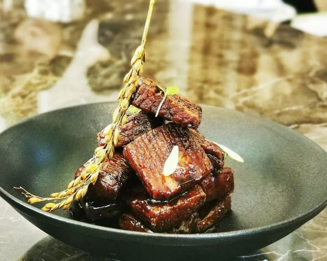 黑醋松板肉,手工银丝饼,红红火火雪花牛肉粒,葱烤辽参,松茸炖花胶汤,江南鲍鱼红烧肉,樱桃酿鹅肝,火腿野菜石榴包,甜甜蜜蜜一口牛,灌汤鹅肝酱虾球
