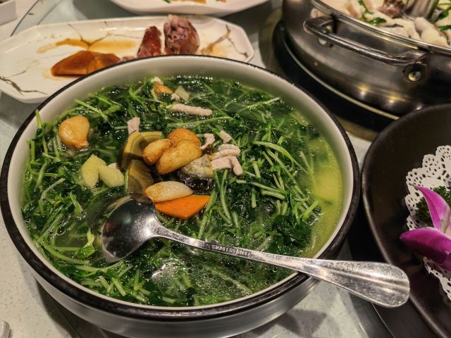 过年期间来的,排队的人真多啊,等了将近2个小时才吃上。顺德菜是很有名的,鱼生必须要点。桑拿鱼和桑拿鸡也不错,非常的嫩。煲仔饭的锅巴真香。