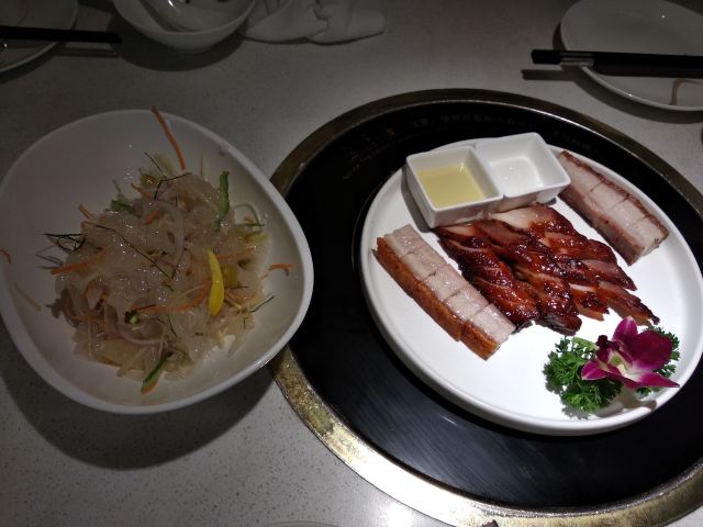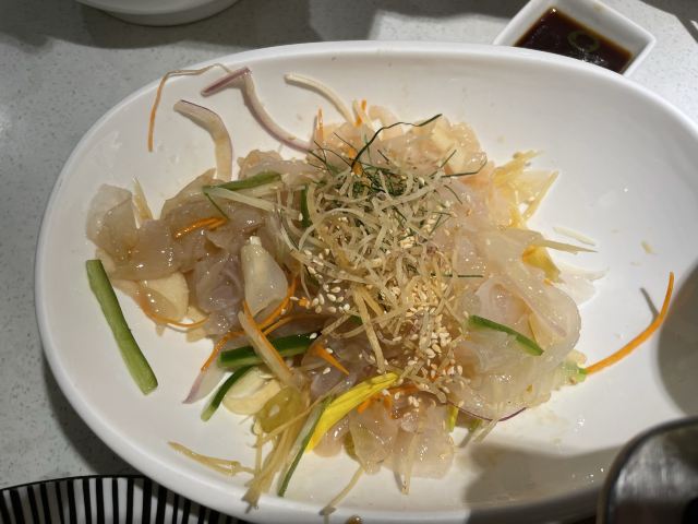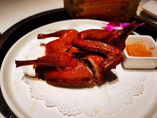 食神牛最近午市点心6.8折又去光顾,生意很好看上去虽然有空位但大多数留座了。午市菜单传统的广式点心、蒸菜、甜点都打折品种蛮多。 麦香金丝包23元色泽金黄表层有网状拉丝,面皮松软中间糖馅绵黏油浓且太甜了。 千层桂花糕28元晶莹剔透冰凉滑爽,桂花飘香清甜细腻。 状元及第粥23元粥很绵厚香鲜,猪肝猪肚猪肠肉丝都很酥嫩量也蛮多。 麦香核桃包26元面皮刻花仿核桃外形也很松软,红糖核桃馅料很香酥甜浓。 豉汁蒸凤爪32元鸡爪胶质满满很绵弹,豉汁入味浓而不咸。 顺风顺水虾饺皇38元虾饺饱满饺皮莹透,虾仁有好几个鲜滑弹嫩。 广式怀旧油条12元油条很脆硬香酥,没有“某某德”的庞大蓬松好吃。 香菜牛肉肠26元肠粉薄滑香菜很多,牛肉呈浆馅吃不出牛肉味。 午市不打折菜: 脆皮乳鸽48元色面看上去不错,但味道一般烤的比较老,翅膀部分都焦了肉质有些干柴。 双皮奶18元奶香浓郁柔嫩水滑味道蛮不错。 点心做的蛮可口,价格也蛮优惠,服务态度非常好及时到位,还询问了口味意见。