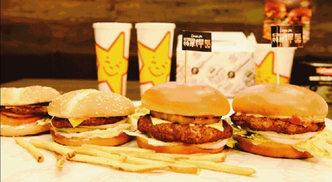 洋葱圈 , 奥利奥奶昔 , 嫩汁鸡柳 , 双层芝士牛肉汉堡 , 超级卡尔堡 , 超级巨星芝士堡 , 大汁鸡腿堡 , 薯条 , 经典安格斯汉堡套餐 , 厚切鳕鱼堡