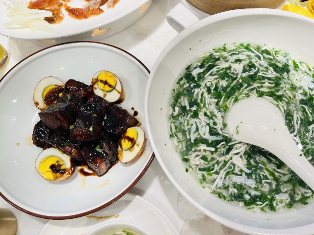 Andre Li🌈兴兴——上海本帮菜天花板,仅此一家(浦东上南地区[胜利]) 自从漫乐城开业后,原来的沃尔玛成了美食天地,成为了周边地区人的福音,连兴兴也搬到了这里(哈哈,其实早在没有搬家前就知道了[奸笑])此次规模扩大,还有专门的点心窗口,包厢也是几十个,装修的很雅致,外面玻璃窗一目了然 刚开业几天真的很火爆,都是慕名而来的,排队热火朝天,好不容易周末的中午提前到,早早的第一批吃上了,味道一如既往,更甚一筹[强][强] 「响油鳝丝」老上海人的最爱,老板娘推荐白烧鳝丝我下次一定要尝尝 「烤鸭」超级赞,山楂条黄瓜条绝配,而且我觉得兴兴的酱做的最好,片皮鸭的精华就是酱,非常浓郁,而且皮真的超级薄[调皮] 「白斩鸡」量挺大的一份,鸡肉很鲜美 「罗宋汤」超好喝,老少皆宜,肉也多 「红烧肉烧蛋」甜度刚刚好,红烧肉肥而不腻,满足! 「生煎包」招牌点心,汤汁鲜美 太多太多好吃的菜了,没有一道踩雷的。真的,住在大浦西的朋友都可以来尝尝看,绝对正宗的上海米道[调皮][调皮] PS:老板娘最靓[耶]