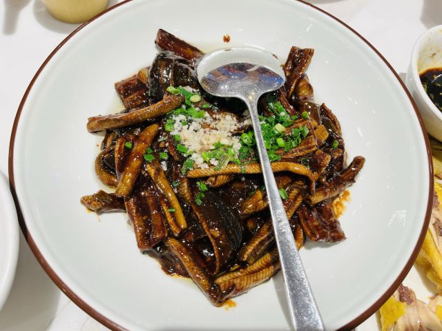 XINGXING RESTAURANT复活艰难的4 5月,大家庭好久没聚了,找个由头,吃个饭… 上南附近适合聚餐的都吃过几家了,这家必吃榜,还是老店新开,必须来尝尝。 提前电话预约加微信,付定金,点菜,搞定。 爆鱼,外酥内嫩,浓油赤酱,好吃。 老上海色拉,小时候的最爱,怀念。 糟钵头,胗肝,毛豆,猪蹄,凤爪,什么都有,味道也很好,适合夏天。 鳝丝双拼,油爆虾虾仁双拼,两种口味都能尝试,真的不错呀!鳝丝是粗粗的那种。 蟹粉豆腐,这个真的好好吃,鲜就一个字!
