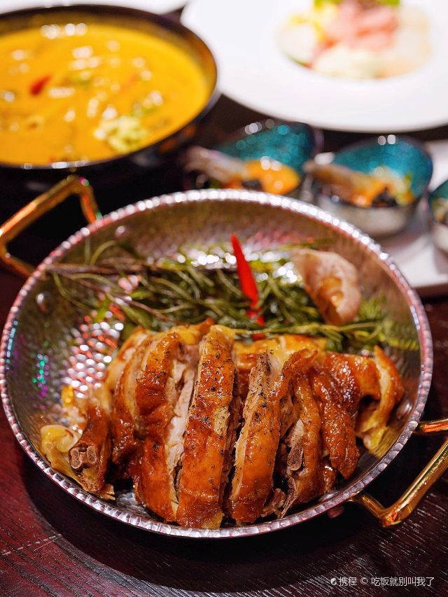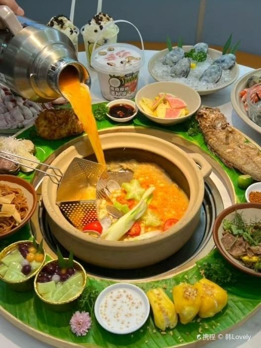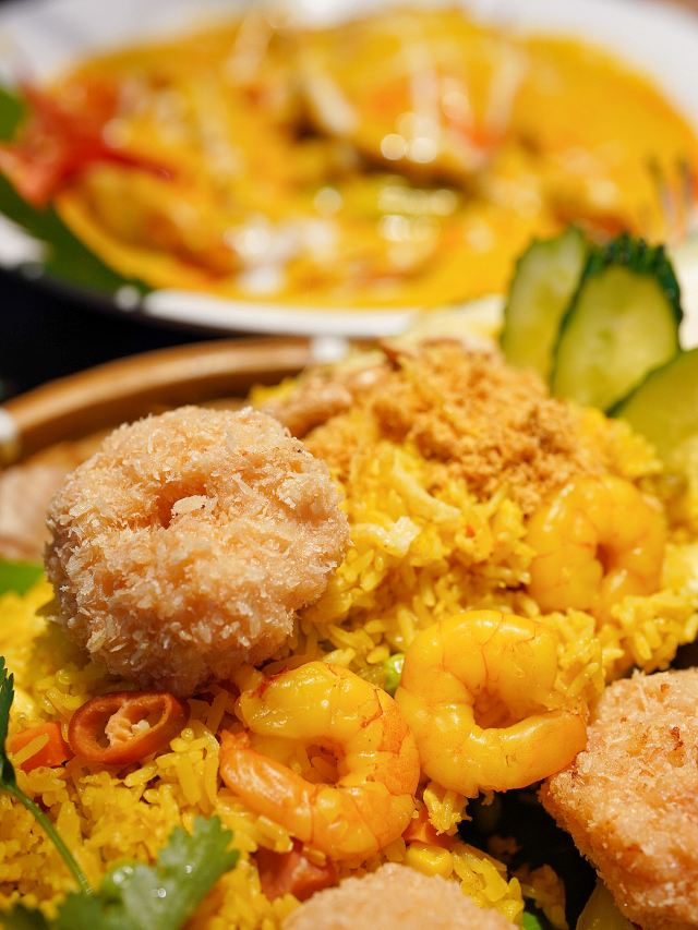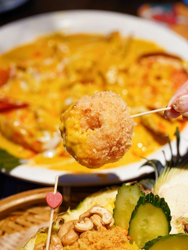 加油干饭呀百吃不腻的泰妃殿提前进入圣诞模式🎄把普吉岛都搬进了mall里,进门都不自觉想来一句“萨瓦迪卡”🇹🇭 小心⚠️熊出没🧸可可爱爱的🍹DUNDUN金桔百香果饮🍹这颜值实在太好拍了,分分钟狙击少女心💓金桔和百香果手拉手坠入茉莉花茶的爱河,对于DUNDUN一族而言,一杯根本不过瘾好嘛~~~ 拌饭一绝的🦀️咖喱皇炒膏蟹🦀️,很黄‼️很下饭‼️奶香重辣味低的咖喱酱,足以让平凡的米饭变成人间至味🍚 讲真,咖喱才是整道菜的精华所在,在蟹壳上顺势瀑布而下,香气瞬间占领嗅觉高地,满满一蟹壳的红膏,蟹肉的鲜甜完全没被盖过,反而被激发得淋漓尽致,一口下去幸福感飙升📈 而🍛古法咖喱膏蟹🍛就更绝了,里面还有嫩滑炒蛋,配上一碗泰国香米,就能自制一份咖喱滑蛋饭,配上一份🍍海鲜菠萝炒饭🍍,那可不就是炒饭界的天花板🔝