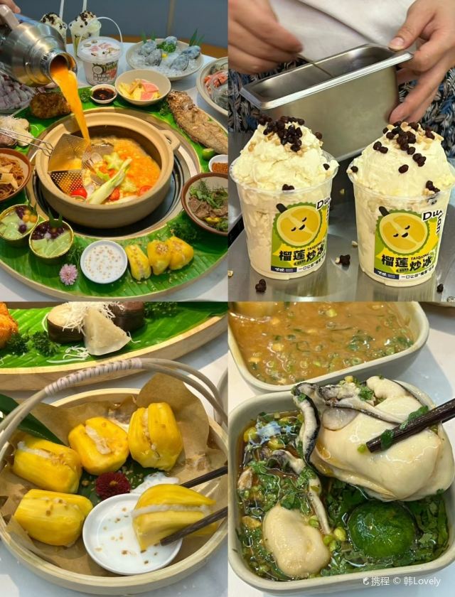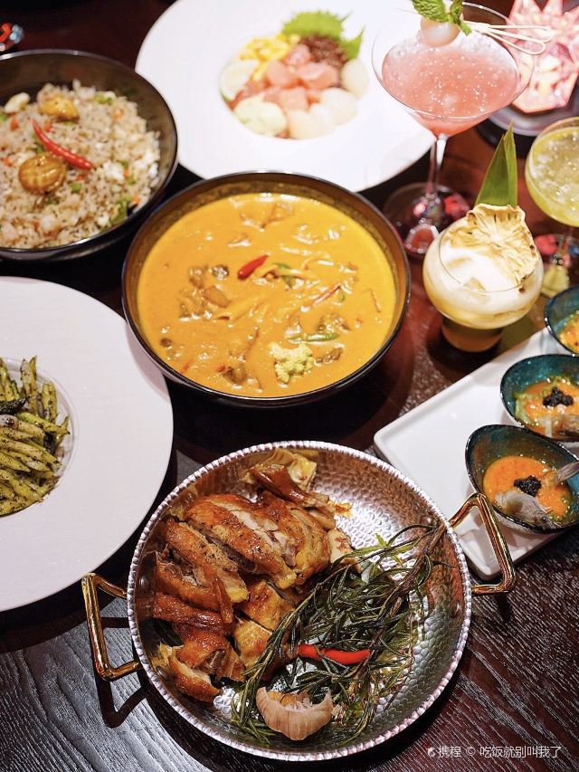 百吃不腻的泰妃殿提前进入圣诞模式🎄把普吉岛都搬进了mall里,进门都不自觉想来一句“萨瓦迪卡”🇹🇭 小心⚠️熊出没🧸可可爱爱的🍹DUNDUN金桔百香果饮🍹这颜值实在太好拍了,分分钟狙击少女心💓金桔和百香果手拉手坠入茉莉花茶的爱河,对于DUNDUN一族而言,一杯根本不过瘾好嘛~~~ 拌饭一绝的🦀️咖喱皇炒膏蟹🦀️,很黄‼️很下饭‼️奶香重辣味低的咖喱酱,足以让平凡的米饭变成人间至味🍚 讲真,咖喱才是整道菜的精华所在,在蟹壳上顺势瀑布而下,香气瞬间占领嗅觉高地,满满一蟹壳的红膏,蟹肉的鲜甜完全没被盖过,反而被激发得淋漓尽致,一口下去幸福感飙升📈 而🍛古法咖喱膏蟹🍛就更绝了,里面还有嫩滑炒蛋,配上一碗泰国香米,就能自制一份咖喱滑蛋饭,配上一份🍍海鲜菠萝炒饭🍍,那可不就是炒饭界的天花板🔝