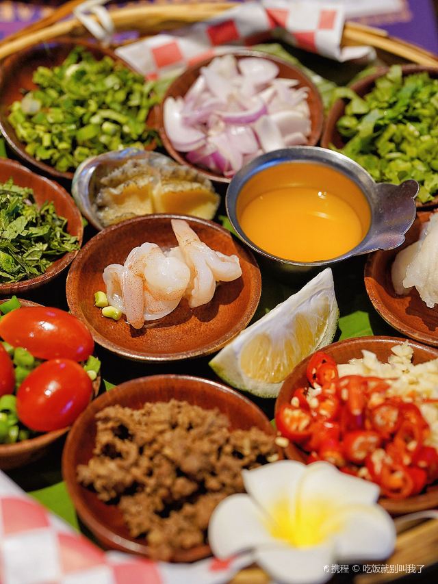 冬阴功汤,泰式炒宽米粉,泰式经典虾酱空心菜,招牌泰式奶茶,芒果糯米饭,泰式柚子虎虾色拉,香茅烤鸡(半只),红泰咖喱牛肉,泰式柠檬茶,鱼露汁鸡翅
