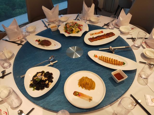 圆苑红烧三宝,拆烩蟹粉水库鱼头,圆苑红烧肉,脆皮小乳鸭,冰沙红酒鹅肝,蟹粉烩豆腐,糯米红枣,蒜枣河鳗,焦糖蒜香牛仔粒,文火雪花牛肋肉,本帮鳝糊