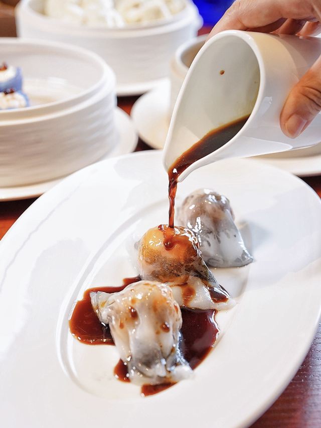 加油干饭呀外滩新晋性价比之王,“園來”藏身老码头的精致午茶,竟然也可以如此高性价比‼️ 看到这个店名就能猜到一二,果然跟老牌本帮翘楚圆苑沾亲带故,坐拥一线黄浦江景,以米其林标准打造法风本帮菜,还有艺术雕塑和6款特色定位碟,把用餐仪式感拉满📈 🍤虾饺皇🍤 白里透红的虾饺皇犹如略施粉黛,闭月羞花少女感十足,每一只都足足包含三颗虾仁,大口咬下去不禁被这份匠心和诚意所打动💓 🍥贝柱玉梨饺🍥 外层饺皮犹如梦幻蓝水晶,中间包裹着洁白如玉的贝柱玉梨馅,既有贝柱的鲜嫩,又有玉梨的爽脆,始于颜值忠于口味 🦑墨鱼脆肠粉🦑 墨鱼汁晕染过的肠粉皮,就像一幅意境山水画,现场浇淋酱汁犹如挥墨泼毫一般,乍看以为粉肠中间包裹着一颗咸蛋黄,其实是Q弹饱满的炸墨鱼丸哦~ 🌹玫瑰陈皮挞🌹 表面晶莹剔透的“红玛瑙”,竟然是道分子料理,将玫瑰、陈皮和红茶都封印住了,轻轻一抿瞬间爆开,释放出丰富的汁水与香气 🦢天鹅酥榴莲🦢 放在窗边随手一拍,便是闲云野鹤的诗情画意,栩栩如生的黑天鹅,仿佛下一秒就要翩跹起舞,层层酥皮包裹榴莲果肉,是好吃到让舌尖“榴莲”忘返的程度👍 创意满满的園來茶点,颜值和口感双双在线,只想闭眼滚菜单,不留任何遗憾~ 🏙園來YuanLai 📍外马路601号沃弗3号库3楼