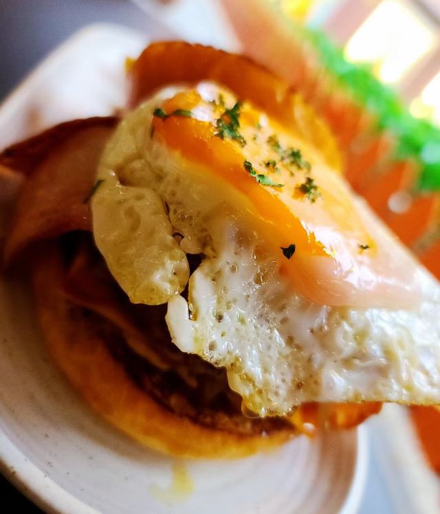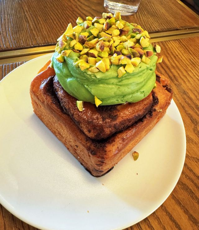 一路漫.慢行这家网红咖啡店以全上海最大的蛋挞而出名,慕名来的真不少,不过我对蛋挞不太感兴趣,碰巧路过就喝杯咖啡、吃个Brunch吧 套餐里的羊角本就准备打包带走的,美式很浓郁,另外点了Tapas,有三个味道的,但是不能混点,选了萨拉米的,感觉很健康,3个一份对付我的小鸟胃差不多了