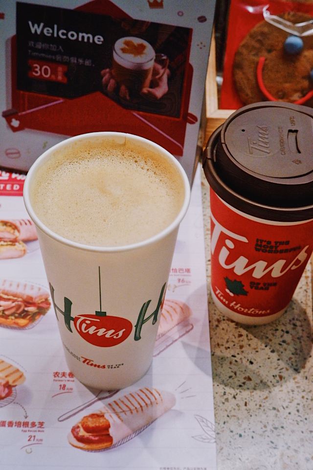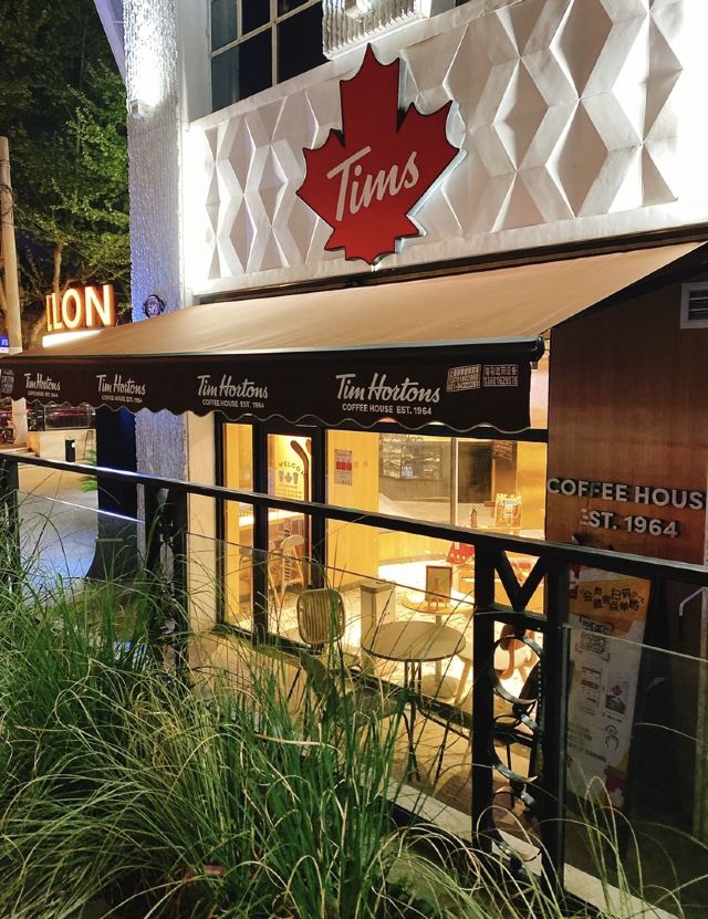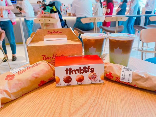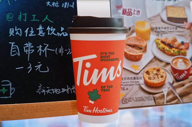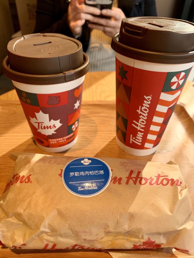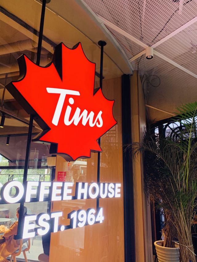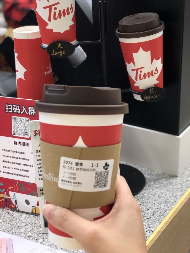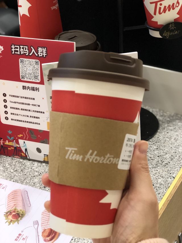 霞光升起1964年,在加拿大多伦多旁的一个宁静小镇——汉密尔顿,多伦多枫叶冰球队的传奇后卫Tim Horton 先生创立了一家Tims 咖啡。2019年,全球第4850家Tims 咖啡馆落户上海最中心的繁华地段——人民广场,这也是Tims 在中国的第一个家。 Tim Horton先生的初心是:“欢迎任何人随时来到Tims咖啡馆,享受家一般的感觉。” 正因为Tims咖啡的logo是一个美丽的红枫,因此,在这落叶飘零的季节里,特别想喝这款咖啡,所以来到了坐落在南昌路509号PALAIS VALLON 广场里的tims。 这家咖啡店在广场一楼,虽然店面不大,但敞开式的空间,给人的感觉不拥挤、不压抑。冬天坐在靠窗位置,享受着太阳的温暖,看看天、聊聊天,很休闲、很惬意。 他们家的小物件也非常可爱,只是价格不菲😃。 遗憾的是由于咖啡杯都盖了杯盖,以致漂亮的拉花都被破坏了😅。