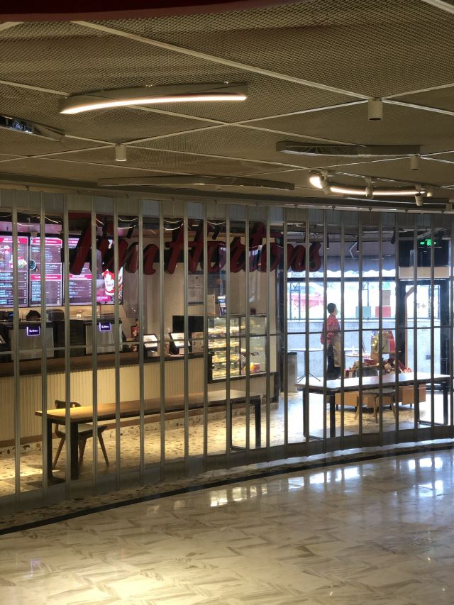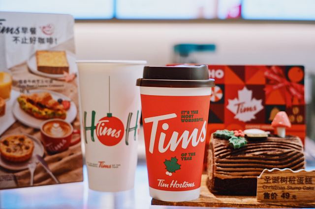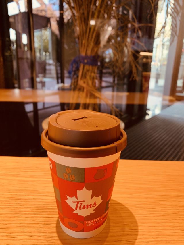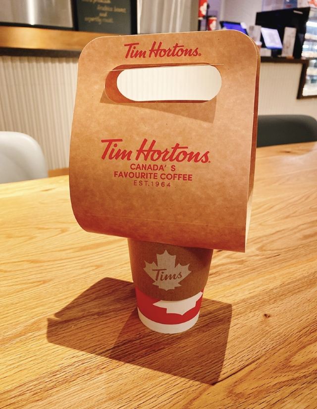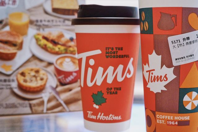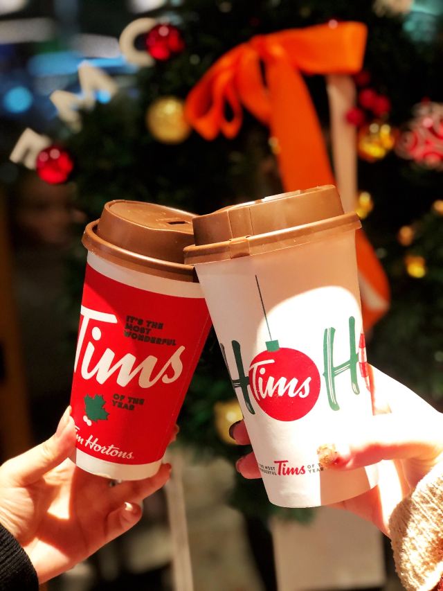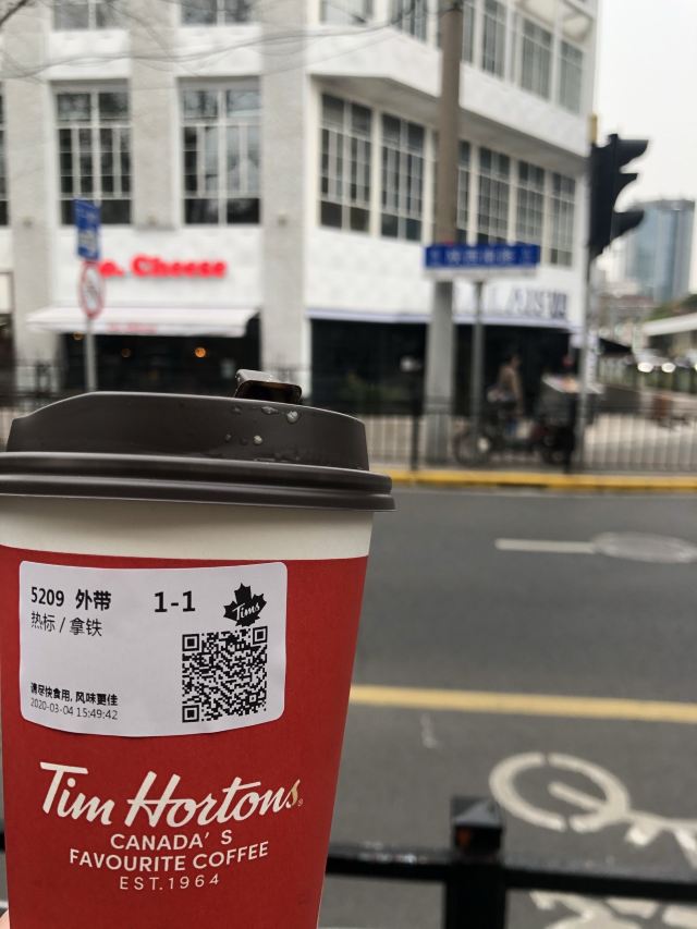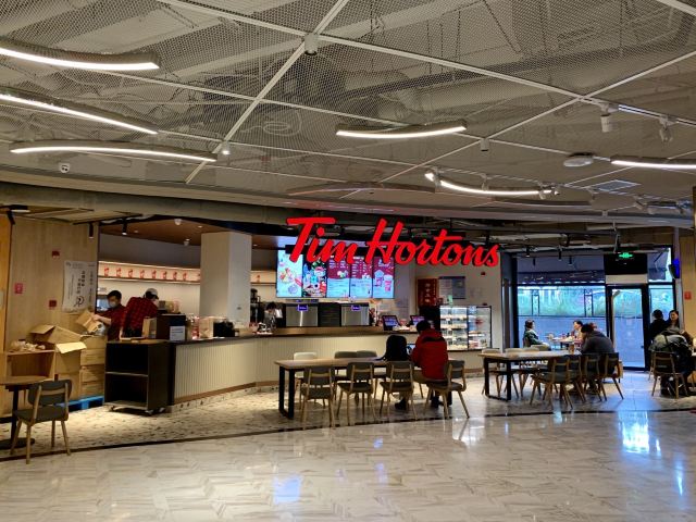 霞光升起1964年,在加拿大多伦多旁的一个宁静小镇——汉密尔顿,多伦多枫叶冰球队的传奇后卫Tim Horton 先生创立了一家Tims 咖啡。2019年,全球第4850家Tims 咖啡馆落户上海最中心的繁华地段——人民广场,这也是Tims 在中国的第一个家。 Tim Horton先生的初心是:“欢迎任何人随时来到Tims咖啡馆,享受家一般的感觉。” 正因为Tims咖啡的logo是一个美丽的红枫,因此,在这落叶飘零的季节里,特别想喝这款咖啡,所以来到了坐落在南昌路509号PALAIS VALLON 广场里的tims。 这家咖啡店在广场一楼,虽然店面不大,但敞开式的空间,给人的感觉不拥挤、不压抑。冬天坐在靠窗位置,享受着太阳的温暖,看看天、聊聊天,很休闲、很惬意。 他们家的小物件也非常可爱,只是价格不菲😃。 遗憾的是由于咖啡杯都盖了杯盖,以致漂亮的拉花都被破坏了😅。