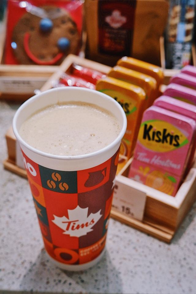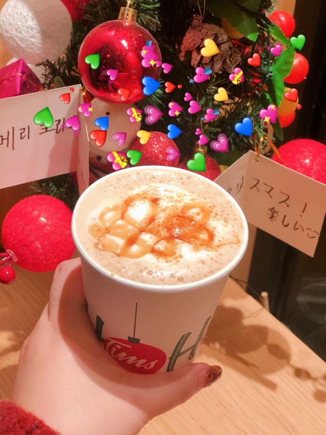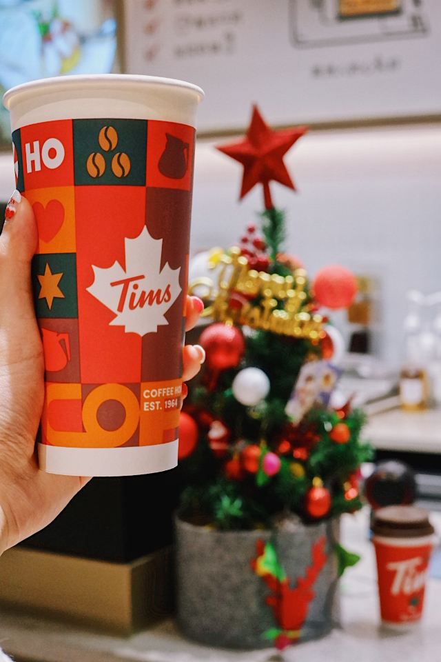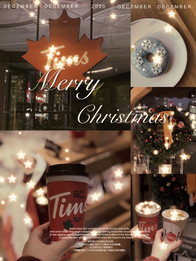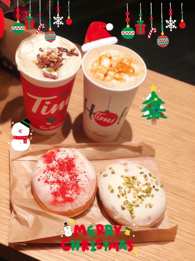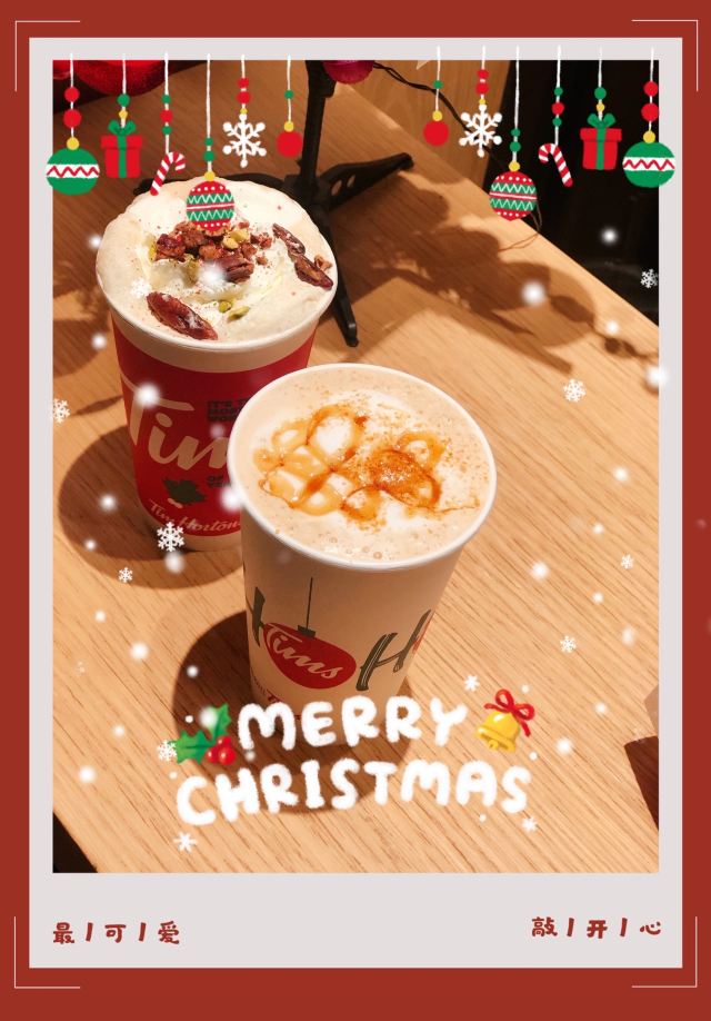 蛋花食游记圣诞季来啦~Tims给立拼团Get高颜值圣诞特饮 我爱的圣诞季又到了,每年圣诞季都会翘首以盼商家的给力活动,这次Tims咖啡果真没让人失望,公众号小程序里的活动很多,限时拼团得高颜值圣诞特饮,和下来只要19元一杯,性价比非常地高,除此之外注册他家会员也有很多福利活动,这次给闺蜜发来的团购,感觉薅到了羊毛。 我和她一人19元get一杯颜值口味双满分的圣诞特饮,满满的圣诞气氛迎面扑来。 烤枫糖金姜风味拿铁,热乎乎地拿在手里特别地有感觉,琥珀色的烤枫糖糖浆以井字型铺满咖啡表面,带着幼滑奶泡一口下去,甜甜的金酱风味,一口如新,如同音符般跳动圣诞的乐章,整杯咖啡充满着焦糖微香,一口圣诞滋味在口中。 碧根果风味缤纷拿铁,第一次尝试碧根果碎的拿铁,香草风味浓郁,丝滑的奶油覆盖在最上面,绿色的碧根果随犹如圣诞的装点,一口香醇在口中弥漫出来。整杯咖啡层次感丰富,果粒香浓,是我爱的口感。 经典红丝绒蛋糕,红色的外观装点着圣诞的起分,蛋糕绵华诱人,入口幼滑,和奶油芝士搭配得相得益彰,口口留香。 太喜欢Tims的各种周边和小甜品了甜甜圈我也很喜欢呢~