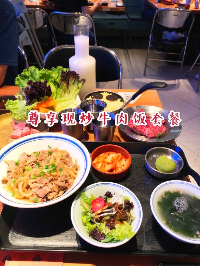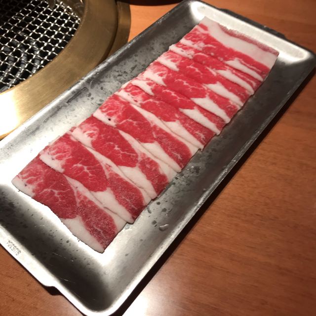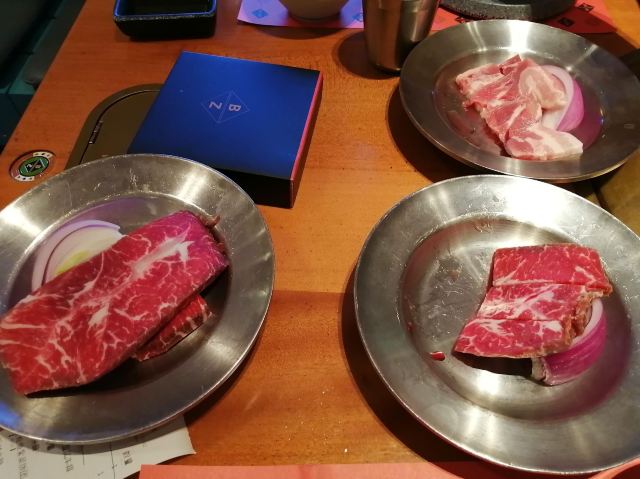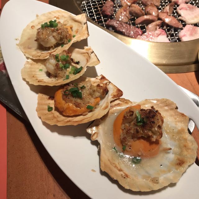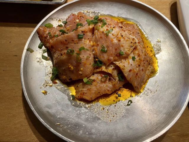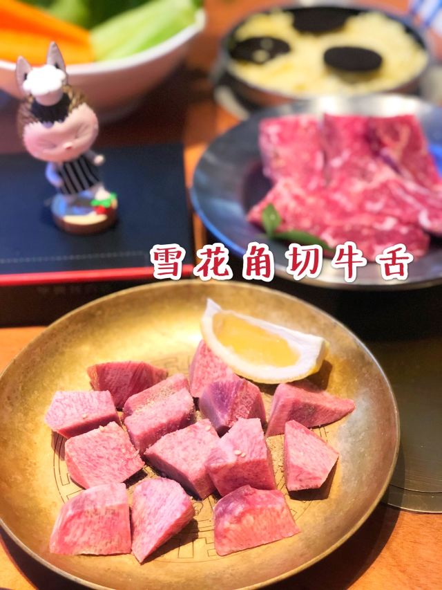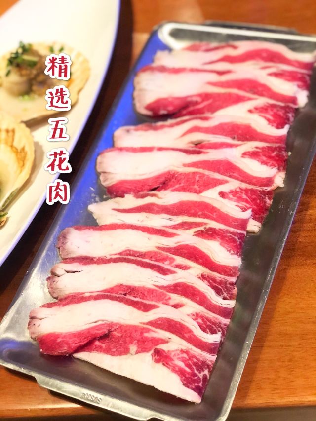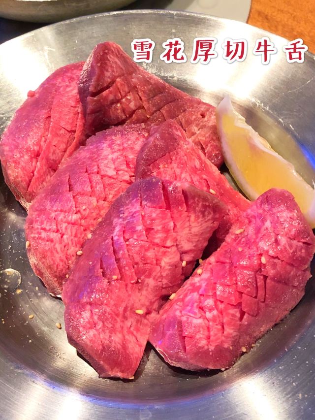看下来是老闵行最好的烤肉店,约上好友一起相约拔草,店铺的4人套餐特别的实惠。 提前和店家预约了8人桌,他们家唯一的一个包间,比较私密,我觉得这个包间12个人挤挤也是可以的。 「至尊安格斯雪花肩牛排」至尊安格斯牛排🥩最受欢迎,肉质鲜嫩,不用烤的特别的熟,5分熟更有口感。 「雪花角切牛舌」厚切牛舌有嚼劲,牛舌切的很大一块,吃上去也是很爽。 「蒜蓉扇贝」扇贝很大的一个,感觉到了满满的诚意,并不是因为团购内容就缩水,最好吃的应该是带黄的。 「雪花牛肉寿喜锅」寿喜锅的时候要批评一下,上菜的时候配的鸡蛋竟然不是默认有的,难道点了寿喜锅还要用户说加蛋才加么[抠鼻]好在最后问了我们加几个,每人加一个倒是出乎意料。 「冰激凌」饭后甜品,这个服务超级棒,大大提升客户满意度,一个不够给两,两个不够给四,吃到你满意为止,服务的大姐要表扬一下,可惜名字忘记了,服务员真的热情一点容易赢得满意。 总的来说还是很满意的,日式烤肉品质好,环境不错。