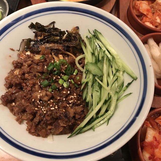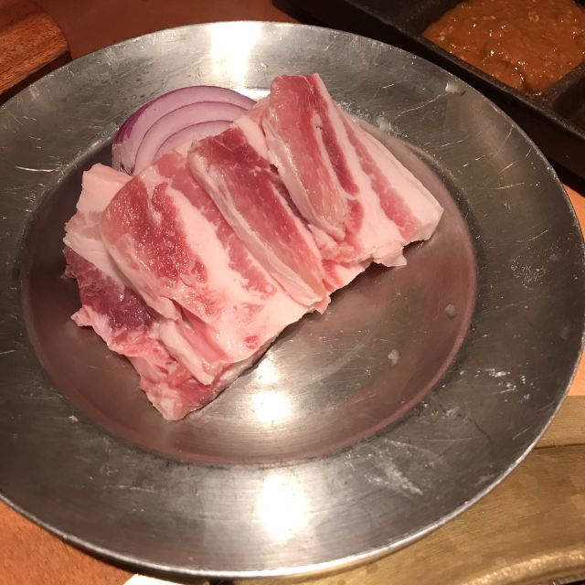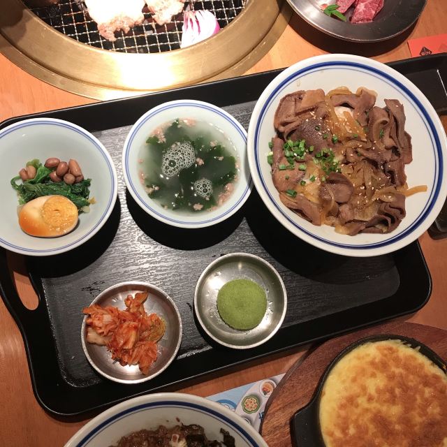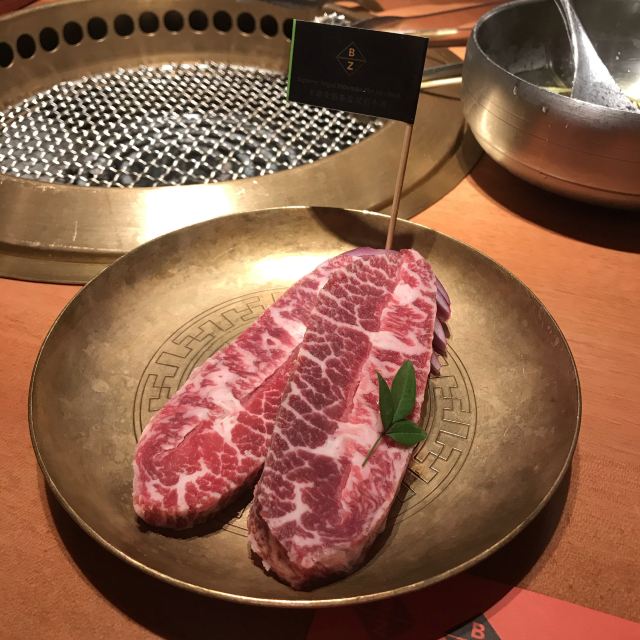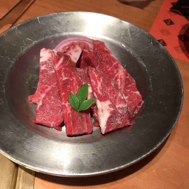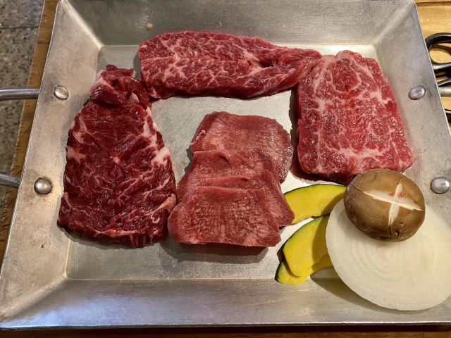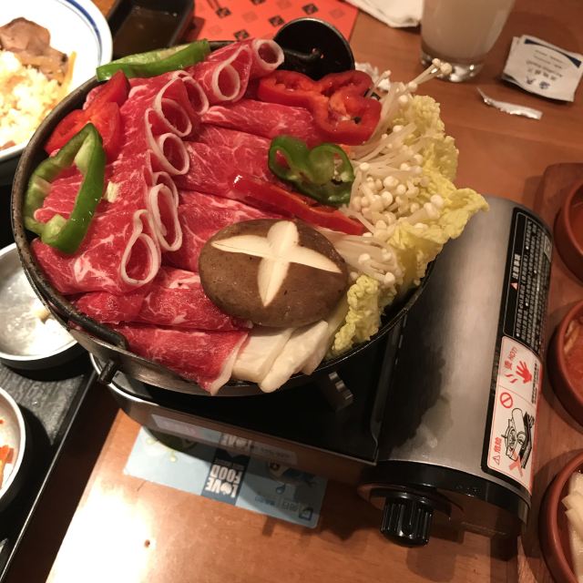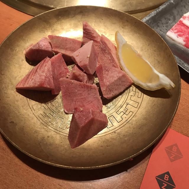 看下来是老闵行最好的烤肉店,约上好友一起相约拔草,店铺的4人套餐特别的实惠。 提前和店家预约了8人桌,他们家唯一的一个包间,比较私密,我觉得这个包间12个人挤挤也是可以的。 「至尊安格斯雪花肩牛排」至尊安格斯牛排🥩最受欢迎,肉质鲜嫩,不用烤的特别的熟,5分熟更有口感。 「雪花角切牛舌」厚切牛舌有嚼劲,牛舌切的很大一块,吃上去也是很爽。 「蒜蓉扇贝」扇贝很大的一个,感觉到了满满的诚意,并不是因为团购内容就缩水,最好吃的应该是带黄的。 「雪花牛肉寿喜锅」寿喜锅的时候要批评一下,上菜的时候配的鸡蛋竟然不是默认有的,难道点了寿喜锅还要用户说加蛋才加么[抠鼻]好在最后问了我们加几个,每人加一个倒是出乎意料。 「冰激凌」饭后甜品,这个服务超级棒,大大提升客户满意度,一个不够给两,两个不够给四,吃到你满意为止,服务的大姐要表扬一下,可惜名字忘记了,服务员真的热情一点容易赢得满意。 总的来说还是很满意的,日式烤肉品质好,环境不错。