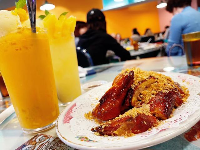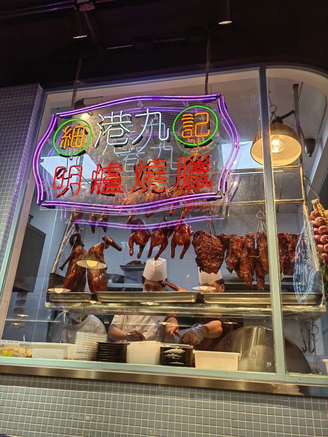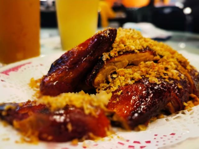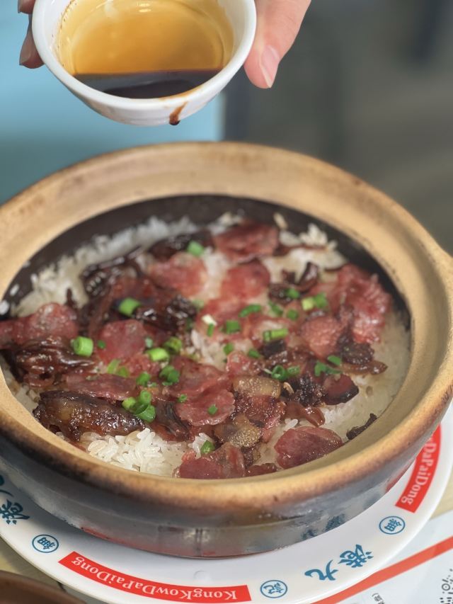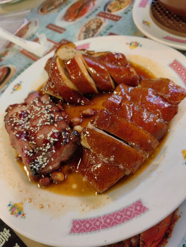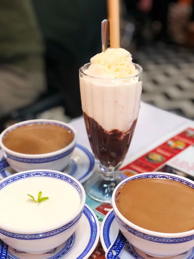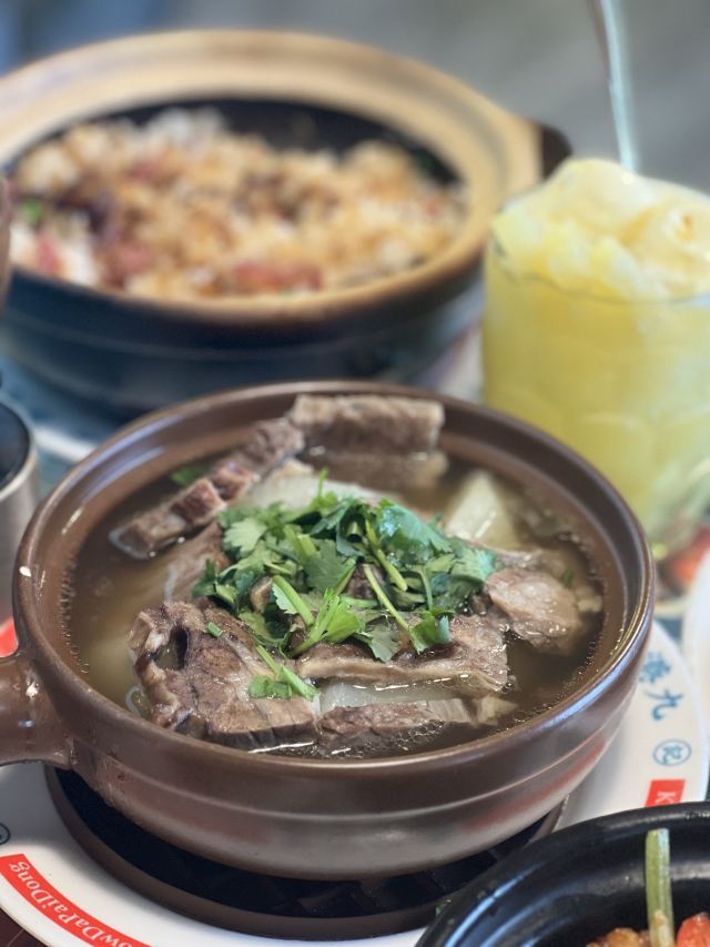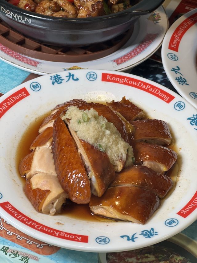 庙街风沙鸡,元朗碗仔翅,细记清汤牛腩,梅头叉烧,鸡油炒豆苗,腊味煲仔饭,牛奶朱古力,榄角冬菜笋壳鱼,香滑潮州奶冻,菠萝冰