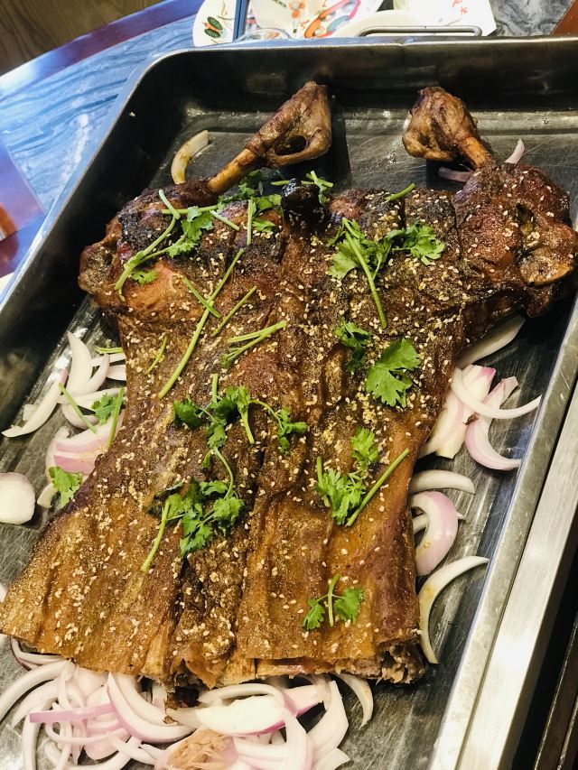去松江记得吃一次,提前定了半只烤羊,爬完天马山后驱车几分钟,口味食材都很棒呢,网上摸的坑爹的多,这回难得有惊喜