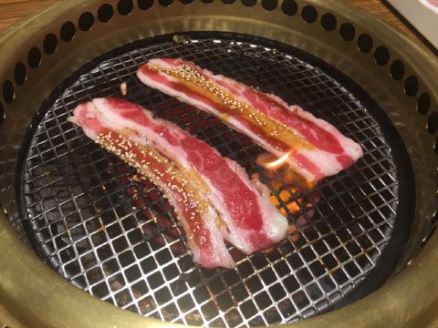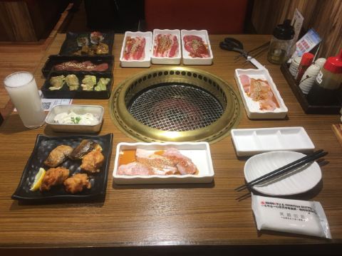 一心牛&一心舌自助烧烤 新世界上的烧烤小店 自助式 100分钟限时 装修比较简洁 除了肉类为现点 其余均为自助 牛五花肉还不错 不过肥肉有点多 自取的炸鸡块倒是很香嫩 但是不贪多 罗勒鸡块 基本有罗勒颜色没有罗勒味道 最中意还是小鱿鱼 烤一烤 Q弹 冰激凌的抹茶部分 茶味比较不错 蔬菜刷油 比较难烤 还可以吧
