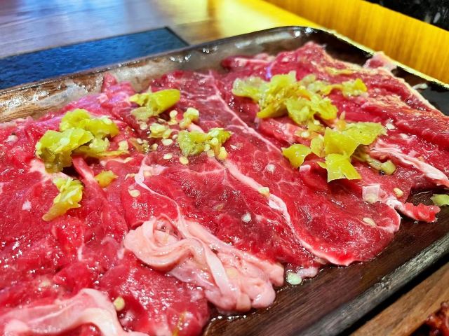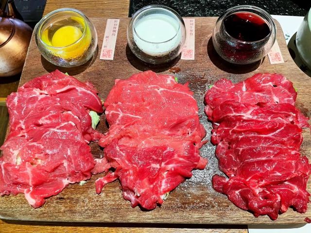 加油干饭呀新天地无限极荟2楼的尽膳口福跷脚牛肉火锅,每次工作日中午去生意都爆好的说,这次特意避开高峰去用餐,刚好可以不用排队等位。 当机立断团购了328元的工作日午市双人套餐,菜品选择丰富,性价比实在太可了👍收藏➕打卡还能免费领取最喜杏皮茶一份哟🆓 锅底选择了🌿草本鸳鸯锅🌶️,辣锅选用的是干辣椒外加老鹰茶,吃完以后不口干不上火,草本锅底是大牛骨汤,待汤滚后小哥会给你一小块胶原蛋白,先喝一碗原汁原味的养生汤,随后再放入一碗牛杂,牛杂处理的非常干净,没有丝毫的膻味哦 🥩九秒牛肉🥩端上桌时仙气飘飘,高端大气上档次,牛肉没得说,名副其实涮上9秒即可食用,又嫩又滑久煮不老,蘸上五彩干碟恰到好处。 气势磅礴的🥓一米牛舌🥓,亲测足足有一米长!真的有震惊到我!而鸭血则是四川火锅的标配,等待开锅之际,嗑几粒酒鬼蚕豆,真是巴适得板~ 🤍峨眉山雪魔芋🤍还是第一次尝试的说!大片的雪摩芋煮上十几分钟,吸饱汤汁精华,入口软绵筋道,推荐搭配芝麻酱,浓稠醇香的口感会让你深深爱上。 🧡红糖糍粑🧡外脆里糯可以拉丝,趁热食用风味更佳,还有冰爽沁甜的三鲜冰粉,正好可以降温解辣。