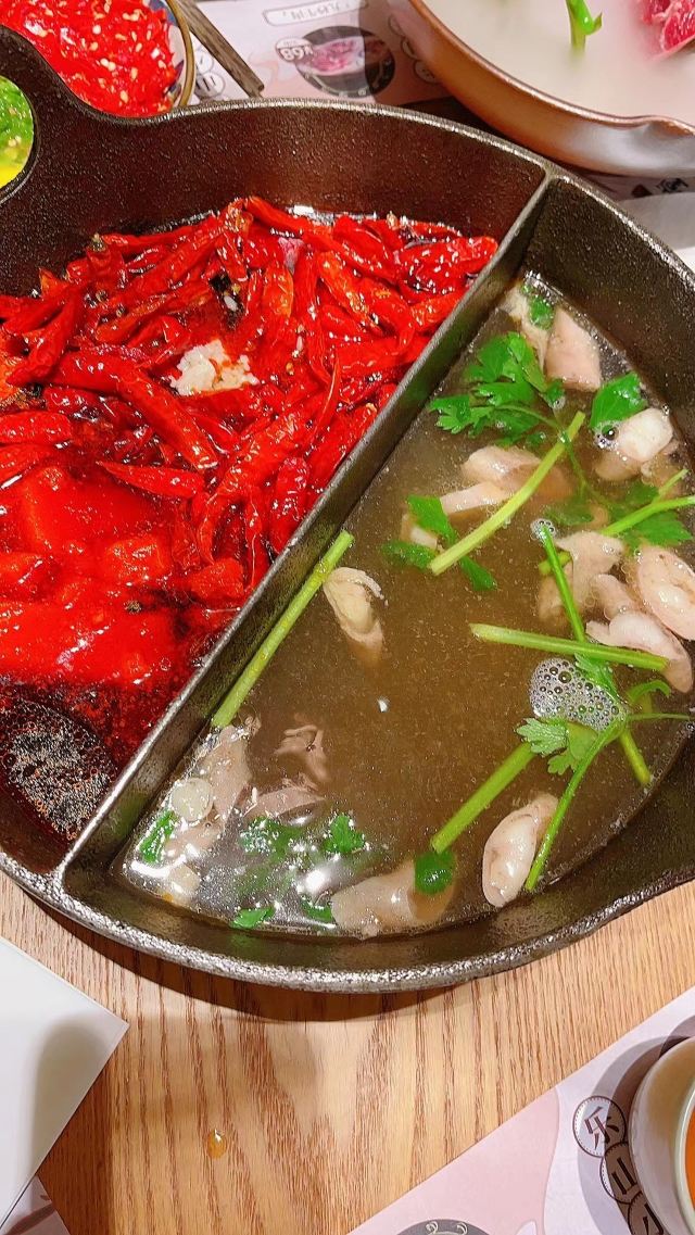 横竖是二温小迪这家火锅是小伙伴给推荐的,据说生意非常好,经常排队。为了错峰,我们4点就去吃了。还好去的早,吃了一半,外面就开始排队了。 「草本鸳鸯锅」白汤是牛骨熬制的,都是新鲜不过夜,里还有大片牛舌和牛肠,牛舌不错,牛肠一般。 「九秒牛肉」量不大,味道还行。 「一米牛舌」这个量倒是可以,牛舌烫6秒就可以了。大体过的去,但是部分会有点老。 「手打牛肉丸」这个和潮州的牛肉丸不同,没那么有弹性,颗粒感比较重,但是感觉都是真才实料,味道还是相当不错。 「虾滑」一般,性价比不高。 「红糖糍粑」不会很甜,小伙伴说还不错。 「鸭肠」这个是点错了,本来点的鸭血。结果歪打正着,竟然挺好吃的。 🌿环境还可以,就是自助调料吧,除了调料外,没啥其他小食。 👩🍳服务还可以,就是上菜太慢了