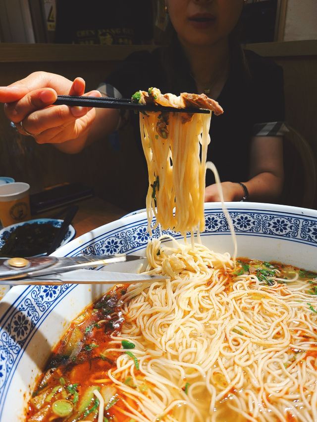 amydog2021-6-11 🍜吃过了魔都陈香贵,真的是要泪奔梦回兰州 跟兰州本地拉面大概是要相差10086碗牛肉汤头了😔 召唤射手小分队,终于能凑到人能去吃大碗兰拉咯😄因为之前在马路上隔着玻璃有看到过别人一家三口点了个大碗好嗨皮,艾小米心心念念了好久