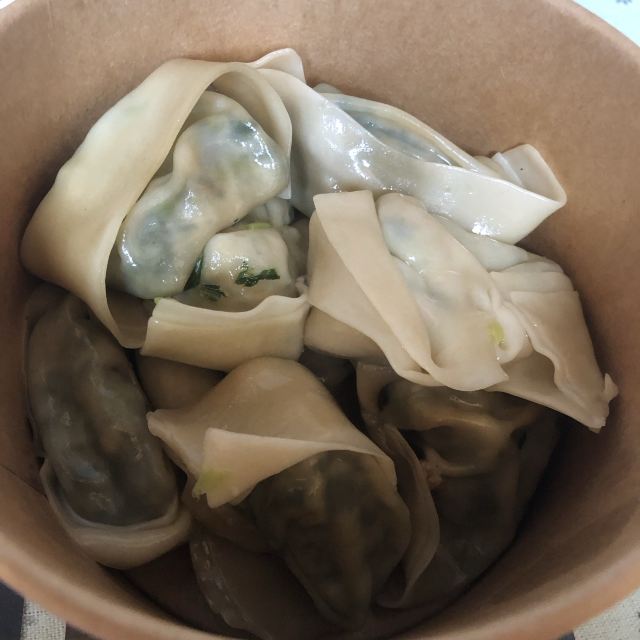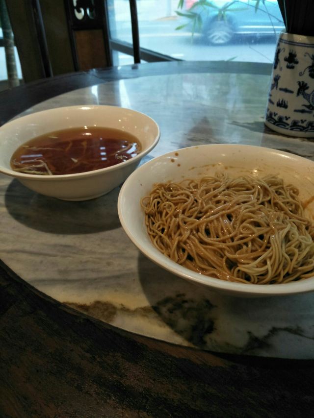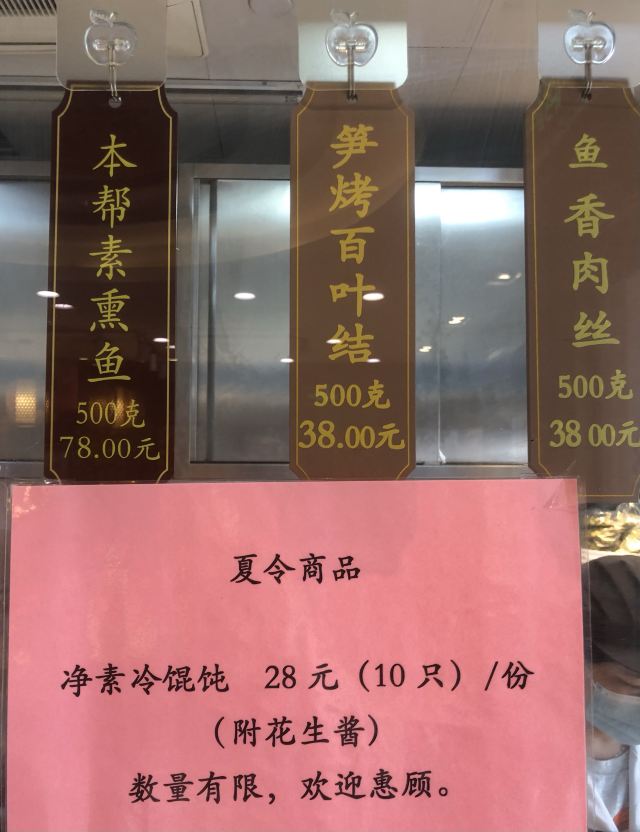 来南京西路这里的“功德林”, 【环境】它有堂吃,也有外卖部。两个区域各自独立。 【口味】天气热,没买平常喜欢的素鸭这类熟食。店员热心推荐了净素冷馄饨,还配着麻酱。带回家果然好吃。老人牙口不好,吃了也很满意。缺点就是价格似乎小贵些。