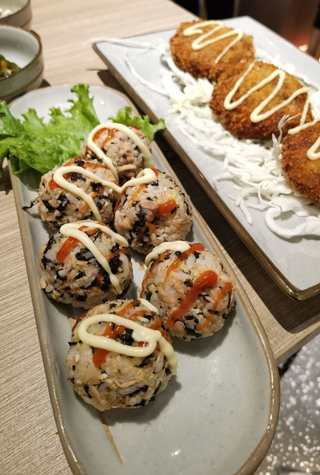 之前来吃烧烤,体验还可以。 说实话哦,烤肉个人觉得有点普通,特色不明显,但其他菜品不错的。 【口味】 |招牌和牛可乐饼^好吃,蛮大一块的,外脆里嫩,趁热好吃。 |吱吱金枪鱼饭团^也还不错,每个饭团大小适中,不影响尝试其他菜品。