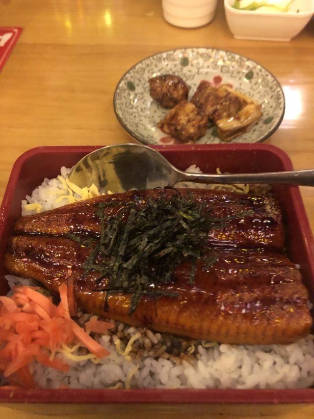 中午在这里吃饭,都是要排队的。环境给了3分,因为实在太吵了,音乐太大声了,完全听不到身边同事讲话。 东西蛮好吃的,尤其鳗鱼饭,没人点了一个定食,还点了很多小食,金针菇培根卷,猪颈肉,鸡腿肉,虾,螺肉好吃。 吃了一块同事的炸鸡味道也不错。 就是太吵太吵了,头都要炸了