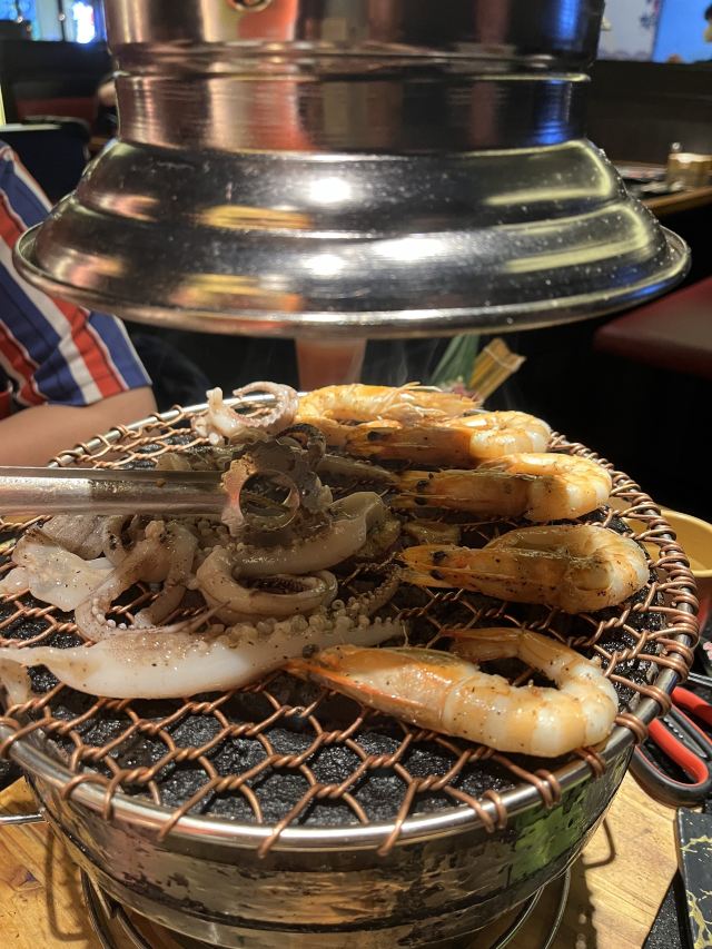 6月中全上海能光明正大堂吃的地方只有奉贤,金山和崇明。 千里迢迢开着车子来南桥百联,生意最好的就是他们家和隔壁牛new。 座位不能满座,基本上店员也是无暇顾及帮食客烤肉。 「八种盛合烤肉拼盘」可以一次吃8种,适合人少又都想吃的。 「壶渍横膈膜」「精选牛五花」「牛肋条」牛肉的味道都很好,需要自己掌握火候,不用烤的时间特别长。 「芝士焗地瓜」「芝士牛肉饼」配着烤肉吃的垫肚子菜,芝士浓郁,牛肉饼是让大家意外的惊喜。 3月9日开始被隔离,6月21日第一次来南桥觅食堂吃,算是结束了隔离100多天的难过。 看到商场恢复烟火气真是感动极了。