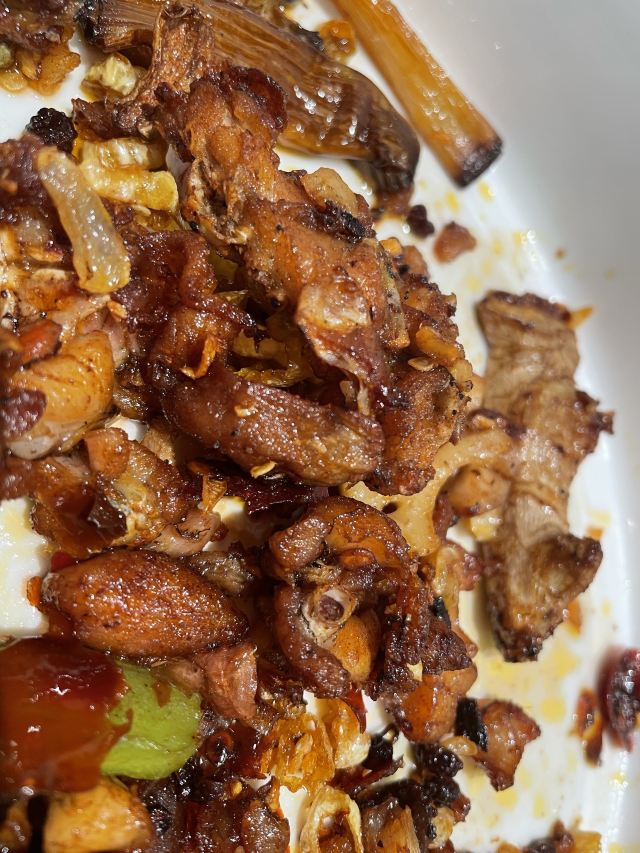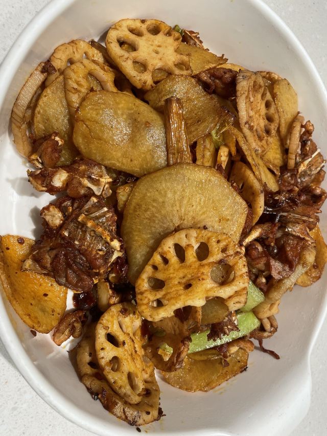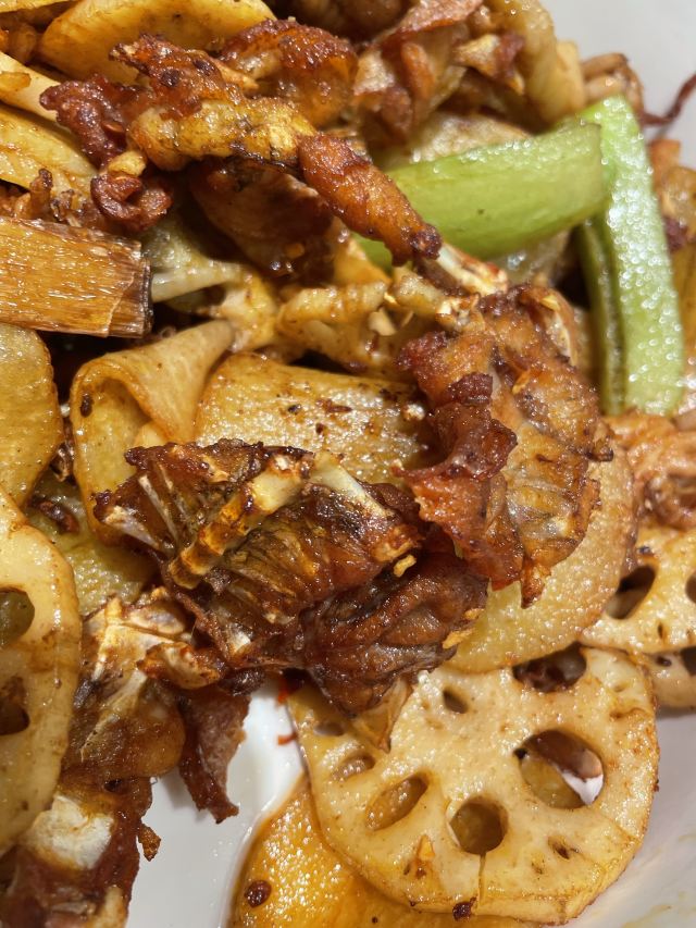 鸡丝凉面,尖椒火爆猪肝,销魂鲜卤牛蛙,土豆丝,火爆腰花,成都担担面,羊肉串,翘脚牛肉,水煮三峡生态鱼,小酥肉