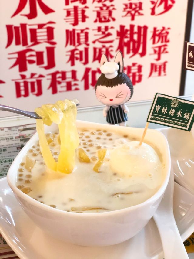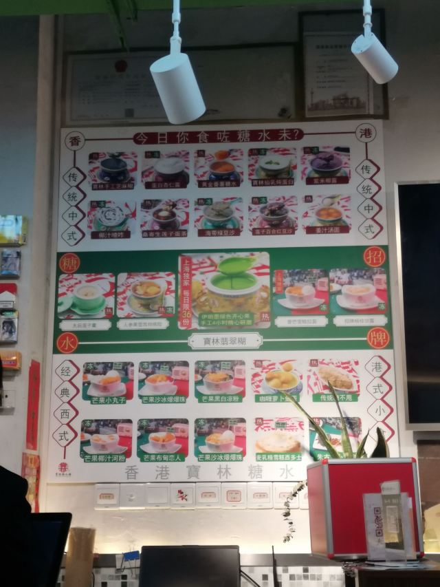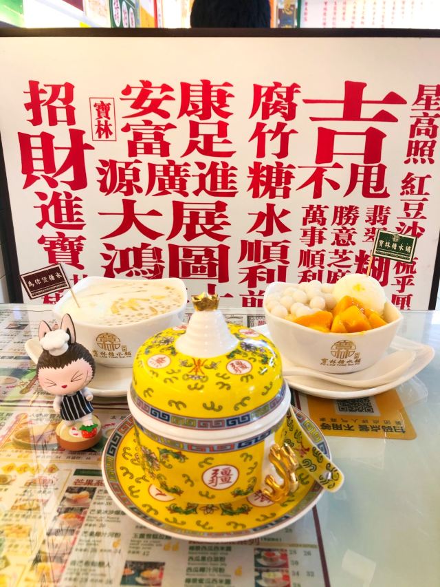 相当地道的港式糖水铺头,满满的港风装修装饰,四大宝林招牌,名字吉祥,福禄寿喜,用料讲究,炖煮到位,十分的享用。这家粤式甜品应该是魔都的翘楚👍