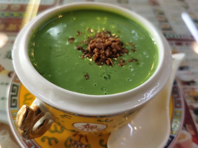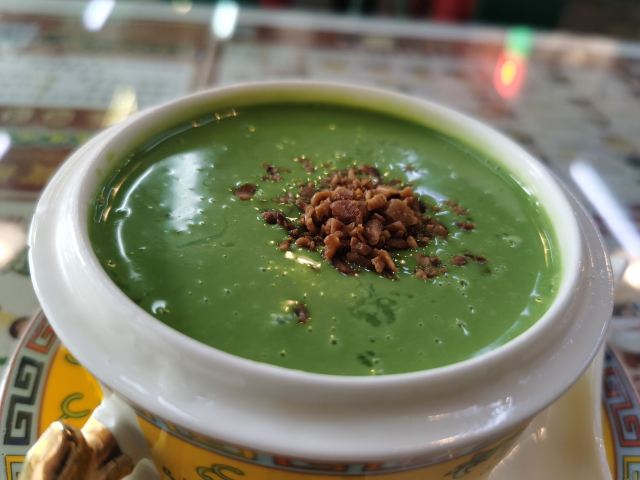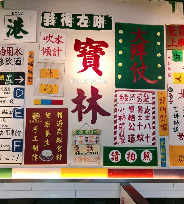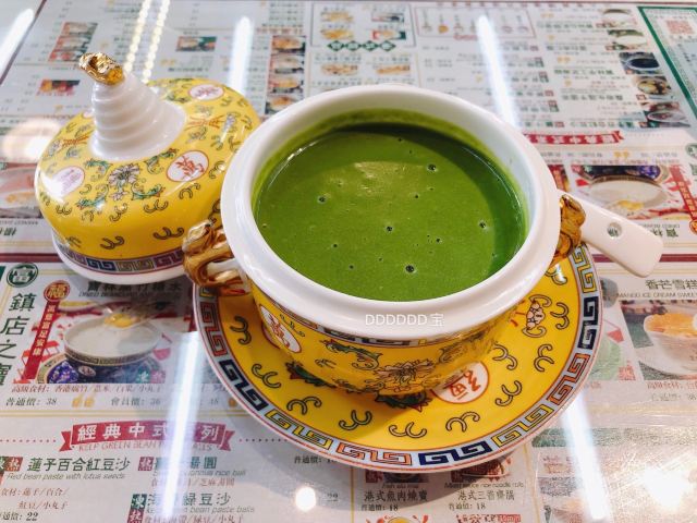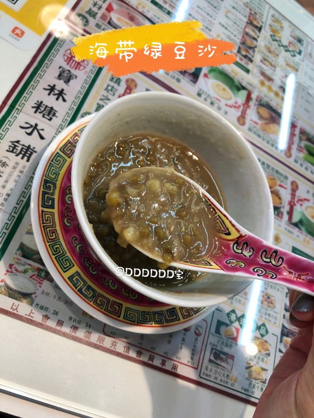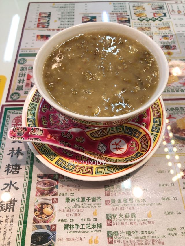 🌟来过好几次,尝试的几款港式甜品都有惊艳到我~目前为止如果想吃糖水的话会优先选这家哦~地道正宗的港式糖水店 🍃环境非常港风,写着许多经典港剧的台词~店铺音乐也是好听的粤语歌,仿佛一瞬间到了香港。 「寶林翡翠糊」这次尝试的他家招牌翡翠糊,每天限量36份!中午12点开售!赞!周末能吃到一碗很开心呀~用的碗就很特别,感觉像御用的哈哈,让整个甜品一瞬间高端了[偷笑]拍照颜值也很高,搭配绿色的翡翠糊,夏天看着特别清爽,很有食欲!翡翠糊是用伊朗开心果做成的,口感上稠稠的,但是很润,感觉滋补又好喝。不会很甜,淡淡的开心果味道,挺香的。里面有糯糯的小圆子,一口接一口停不下来~ 💁店员服务都挺好的,挺客气。