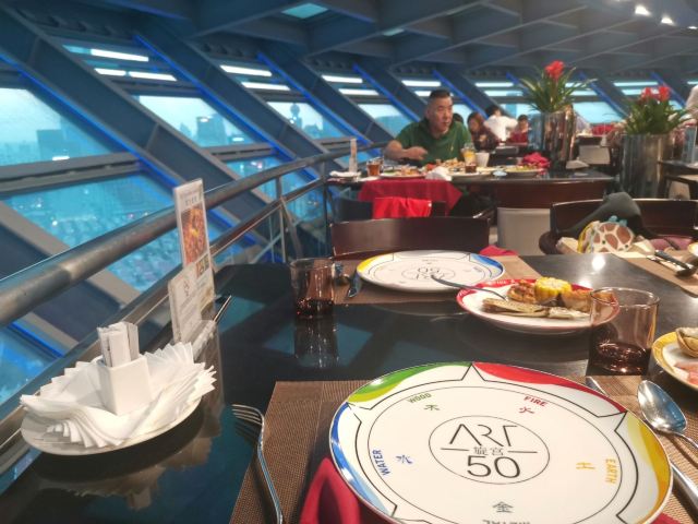 2020年1月疫情来之前来吃年夜饭自助餐的,因为就在家对面。他家餐品比较丰富,确实在50层还带有旋转的,能看到北外滩和陆家嘴。中间还有表演是马来西亚人吧,比较热情,服务也很好!价格300一位,甜品很漂亮,也很多。