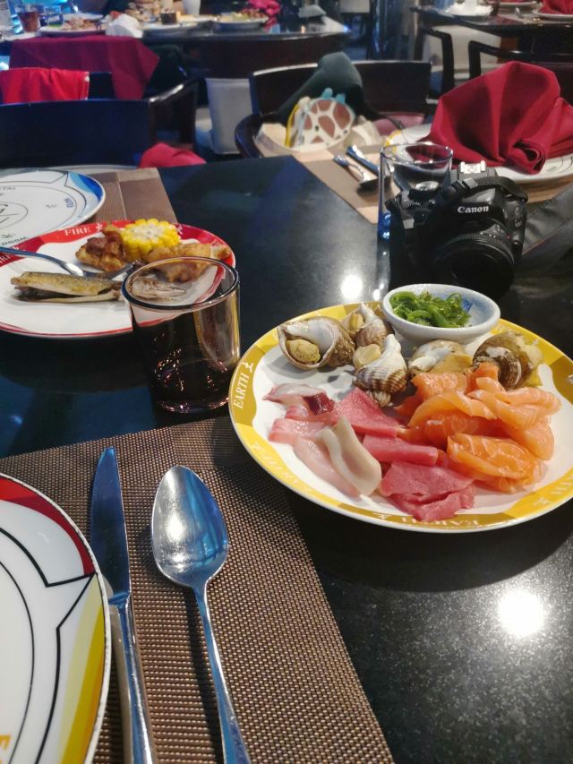 三文鱼,海鲜,甜点,冰淇淋,生鱼片,牛排,烤大明虾,刺身,帝王蟹脚,焦糖布丁,羊排,黑蒜烤生蚝,寿司,曾经的小青龙,提拉米苏,铁板烧,小蛋糕,烤鱼,巧克力慕斯,cheese蛋糕
