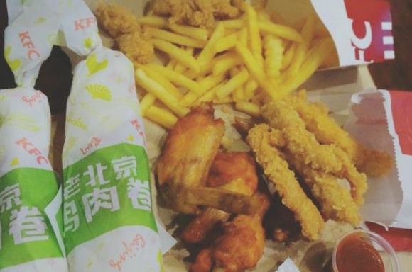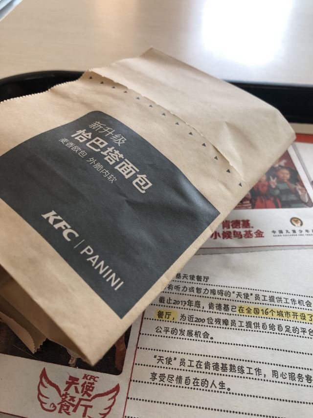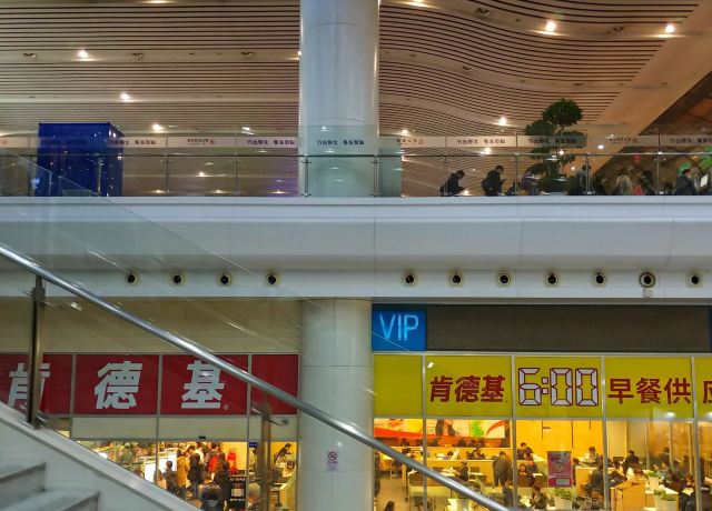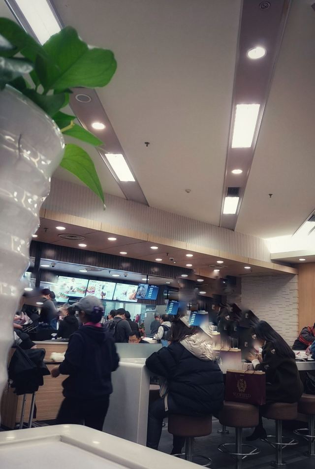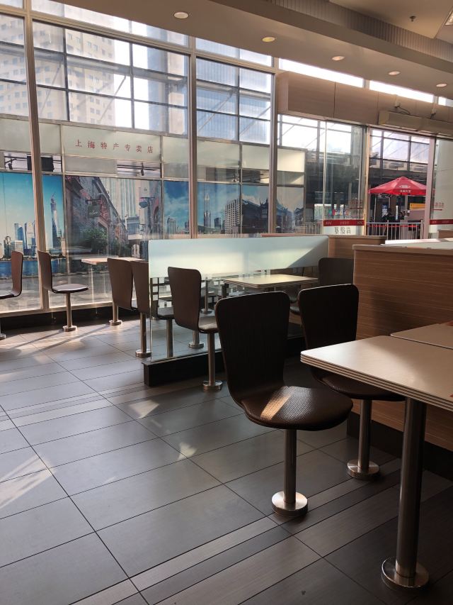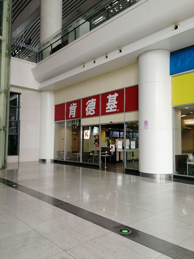 这家肯德基在上海站北广场的进站口, 占了一楼一大片场地, 在火车站里算旗舰店了吧, 很多座位, 在火车站也还是不够坐吼吼。 环境挺不错的, 让人几乎忘记是在火车站这么嘈杂的地方, 上车前在这里坐坐吃点东西喝点什么挺好的。 毕竟上海站的候车室又小又挤肯定没得坐嘛。