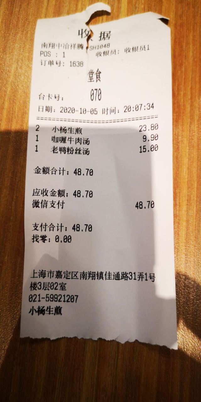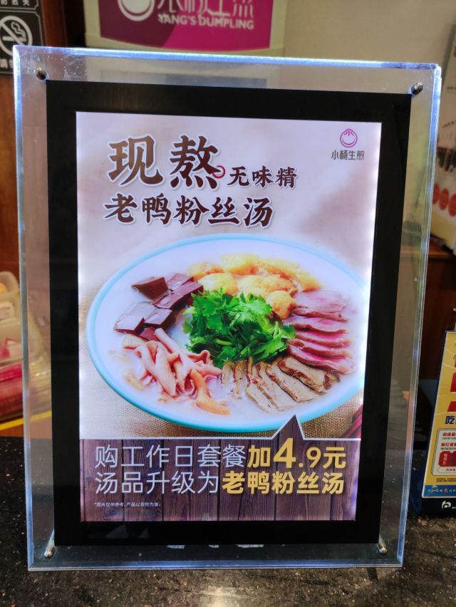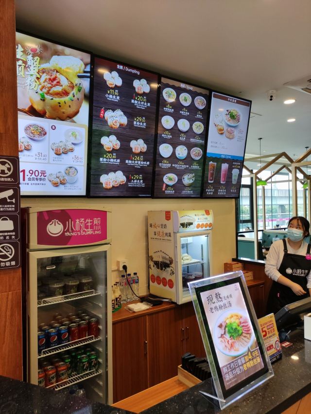大虾生煎 一两(4只),大骨头粉丝汤,春笋仔排汤,三拼骨头汤套餐,咖喱鸭血汤,油豆腐百叶包粉丝汤,牛肉汤,油豆腐,小杨大虾双拼,荠菜大虾双拼,蟹粉生煎,松茸菌菇汤,小杨生煎,油豆腐牛肉粉丝汤(咖喱),藤椒大虾生煎,牛肉酸辣粉,虾仁鲜肉生煎,荠菜生煎,鱼丸汤,上海小馄饨,双拼生煎,牛肉汤(咖喱)