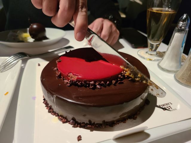 pantry’s best2021-11-11 天蝎座·暗黑小恶魔 海盐焦糖树莓黑巧克力蛋糕 热在内心?那用辣味试试!精选今年新产的红润辣椒粉,精确把控用量,反复进行口味测试,与花果香气突出的坦桑尼亚产地可可豆制成的70%原豆巧克力交融,大胆挑战辣椒慕斯这一做法. |天蝎座海盐焦糖树莓黑巧克力蛋糕^ 关于外貌,真的很漂亮,尤其是正好又是一个喜欢巧克力的天蝎,小恶魔的可爱,暗黑气质,哈哈哈哈哈,天蝎本蝎吧 关于辣椒慕斯,怎么说呢,事先知道有这个元素的情况下,刻意认真品尝,绝对是能吃得出辣味的,但如果在不知情的情况下,又是和朋友谈笑风云间,对辣又不是很敏感的话,其实很容易会忽略到这个辣度感受 送货也是相当完美,完全是在指定时间范围之内,而且送货师傅熟门熟路,会客气地提早5分钟电话联系,说让餐厅派人下来拿蛋糕哦 官网价269,双11几天还打了9折🤪