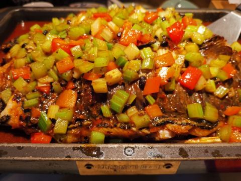 楼上这档子夜市也是渐渐出了名气 食客也是渐渐多了起来 今天光顾的是江边城外烤全鱼 曾几何时也算是火遍全城的烤鱼店 当然今天的烤鱼店设施环境已经是3. 0以后的版本了 可谓是好了不少 吃法味道倒还是那个调调 最最最执念的竟然是这盘|口水鸡^就是很正啊 有没有朋友同感