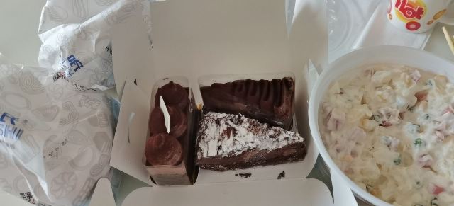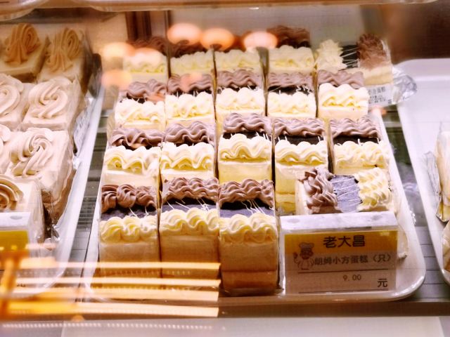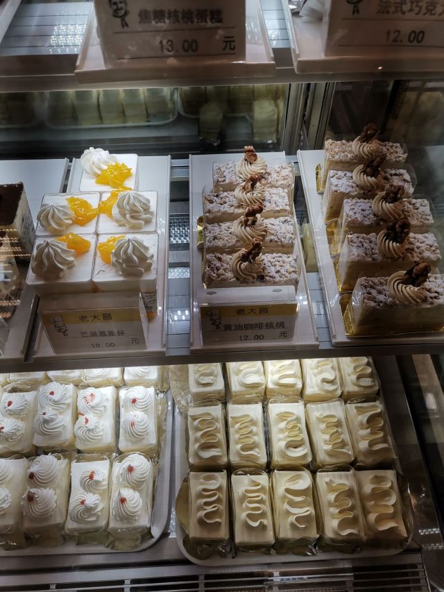 咖喱牛肉饺,松茸鲜肉月饼,纯奶油小方鲜奶小方,布朗尼,咖喱饺,熟酸奶,意大利冰糕,纯奶油小方,白脱忌斯条,花生酱西番尼,意大利白脱杏仁排,巧克力西番尼蛋糕,榴莲千丝酥,白脱蛋糕,雀巢小方,云月芝士,芒果味冰糕,雪域芝士同样吓人,椰丝塔,榛果千层蛋糕,冰糕,哈斗,拿破仑酥,白脱芝士大蝴蝶酥,掼奶油,瑞士卷,鲜奶栗子小方,老酸奶