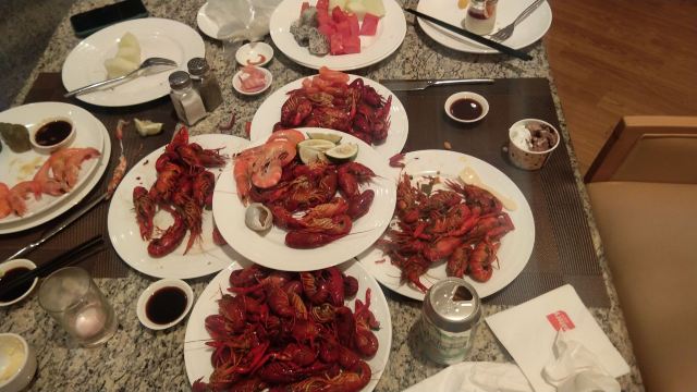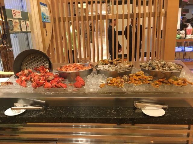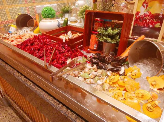 D了个Y食在这里#喜欢吃所以愿意全世界跑喜欢玩所以愿意满世界飞有的时候我自己都搞不清是因为出去吃随带着就玩了还是出去玩顺带着就吃了但是有一点我一直很清楚自己不是那种以量取胜的食客所以通常情况下我很少会去选择..嗯自助餐没错了那个不是我强项然而如果在一家环境尚可的高星级酒店位置也还方便有海鲜有烧烤关键还有欢天喜地惹人爱的小龙虾自助的时候人均不到一百块就问你约不约[偷笑]日式简约的装修风格清爽明快冷食区有冰冻海鲜贝壳类虾类关键有口感颇佳的酒糟小龙虾爱了爱了热食有烧烤有那些个有的没的常规菜都没多看一眼过直奔主题小龙虾单独安置一个区域一共四中口味红烧香辣咸蛋黄蒜蓉小龙虾个头不大但是数量不限啊管够推荐红烧很入味还有各类小食甜点饮料咖啡反正还挺丰富每人还送一份特选小海参小鲍鱼西兰花各一这性价比杠杠的再问你约不约