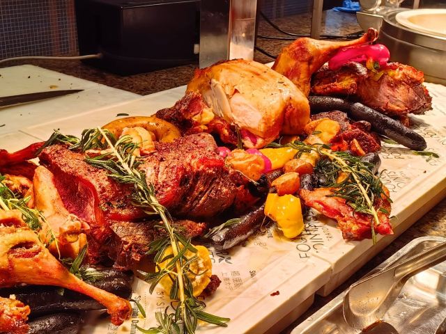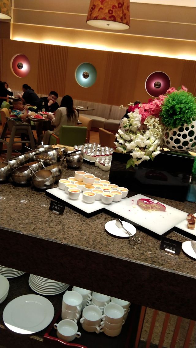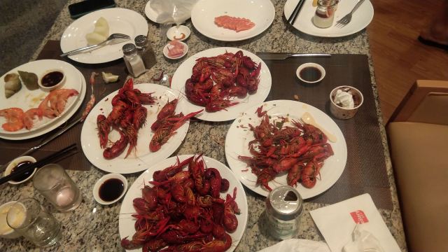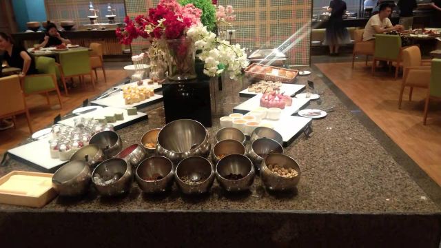 yoyolove7788大宁福朋喜来登一楼的自助餐厅,讲实话我是冲着小龙虾去的啦。 这个地方交通是方便的,开在大宁国际这边有地铁和公交可以到达,自驾也有很大收费停车场。 预定的周日晚餐五点半开始,我看好多人五点一刻就进去了。 餐品种类真的是不多,三文鱼也不是很新鲜看那个鱼肉颜色真是不好。 五钟小龙虾倒是补的很及时,酒醉最受欢迎,我是吃了好多酒醉,一开始的挺好,最后一盘想把虾肉都剥好吃,结果咸到我了,只能剩在那里。 甜点没有吃到好吃的,五星级酒店该有的布朗尼巧克力慕斯通通没有。。。 冰淇淋出乎意料的好吃,我大概吃了十几个巧克力球,饮料品种很少,碳酸饮料不是罐装是倒在大桶里面的,都没有汽了。 环境可以,收盘子也及时,为了小龙虾可能会再去,不爱吃小龙虾的不推荐 。
