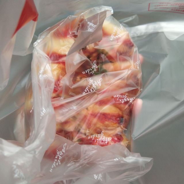 其实是要去约饭呢,奈何居然有点饿了啊,好吧好吧买个面包垫垫饥吧。 苹果花园,买不了吃亏买不了上当,一只带火腿的面包5.8大洋而已,付钱付的一点点也不心疼啊不心疼。 付完钱立马啃起来,面包味道还不错呢,滋味超越定价的,火腿就是普通火腿肠吧。