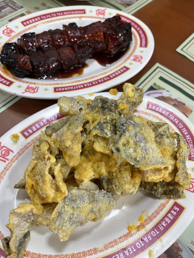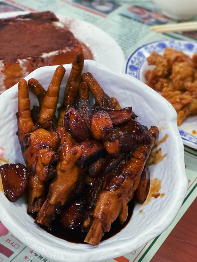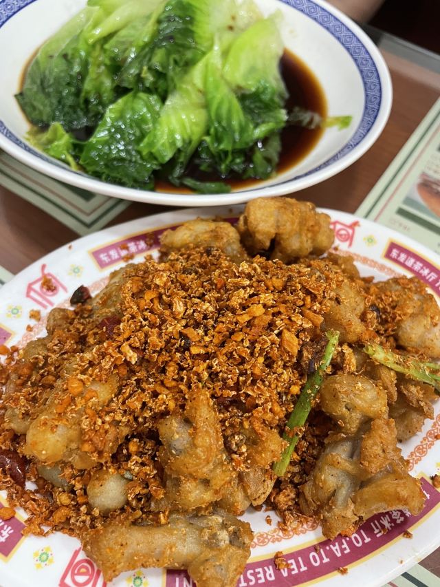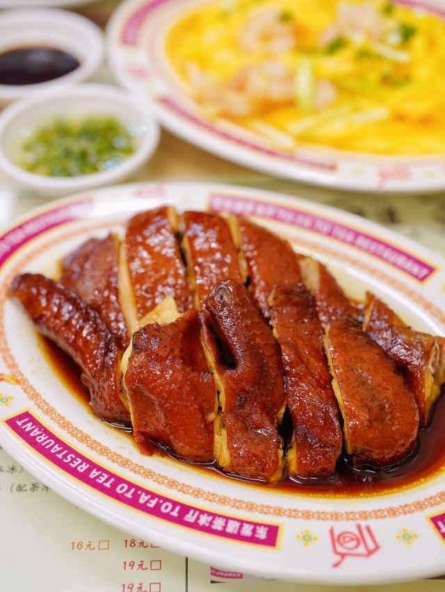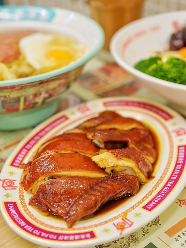 DDDDDD宝🌟终于来打开东发道了~现在等位总体应该比以前好很多了吧,不过饭点还是很多人吖… 早上开门不久到的,还是小等了一会儿。 🍃店里满满港式茶餐厅风~坐满了人,反复一秒回到了香港。 「头抽豉油鸡」一例38元,鸡肉很嫩,豉油入味 「叉烧」蜜汁叉烧48元,另外还有肥叉可以选择。蜜汁叉烧基本都是瘦肉,口味上甜甜的,味道正宗~ 「东发独家漏奶华」他家招牌之一,几乎每桌必点。可以有可可/花生/红豆口味选择。28元。 店员会帮忙切。选了花生口味的,倒没有觉得很腻很甜。一口咬下去层次丰富,面包是炸过的,但内层很软,夹了花生酱咸咸的,和黄油、巧克力粉以及漏奶混合奶香十足。很好吃~推荐 「老鹵煨鸡爪」28元,辣辣的,卤的很入味,鸡爪炖的很烂,差不多入口即化~啃起来很过瘾~ 「腐乳空心菜」28元。白腐乳,有点偏咸~ 可以二刷的店~没有踩雷~