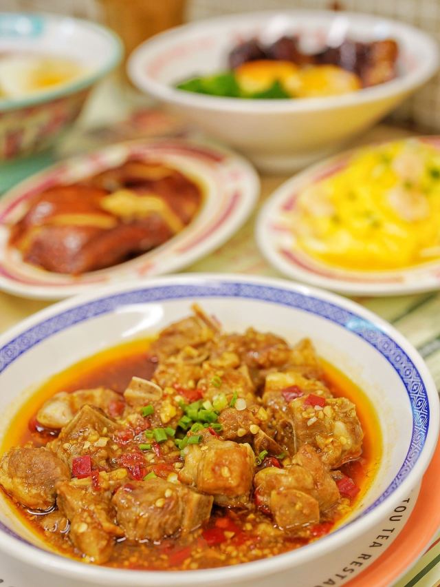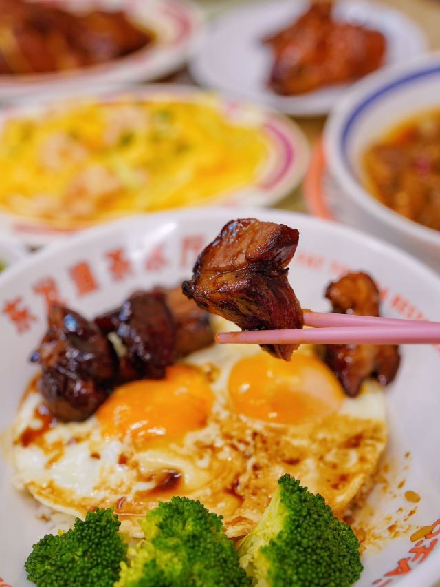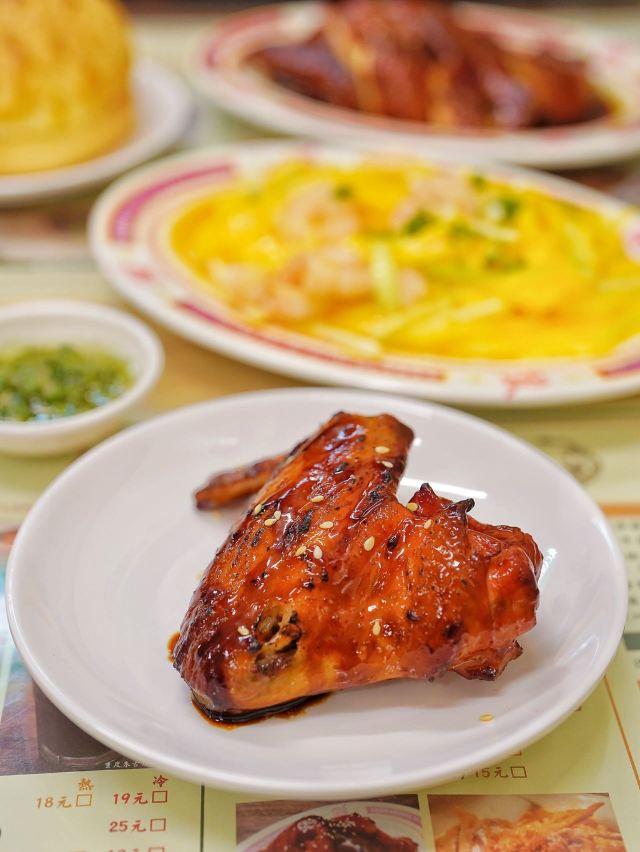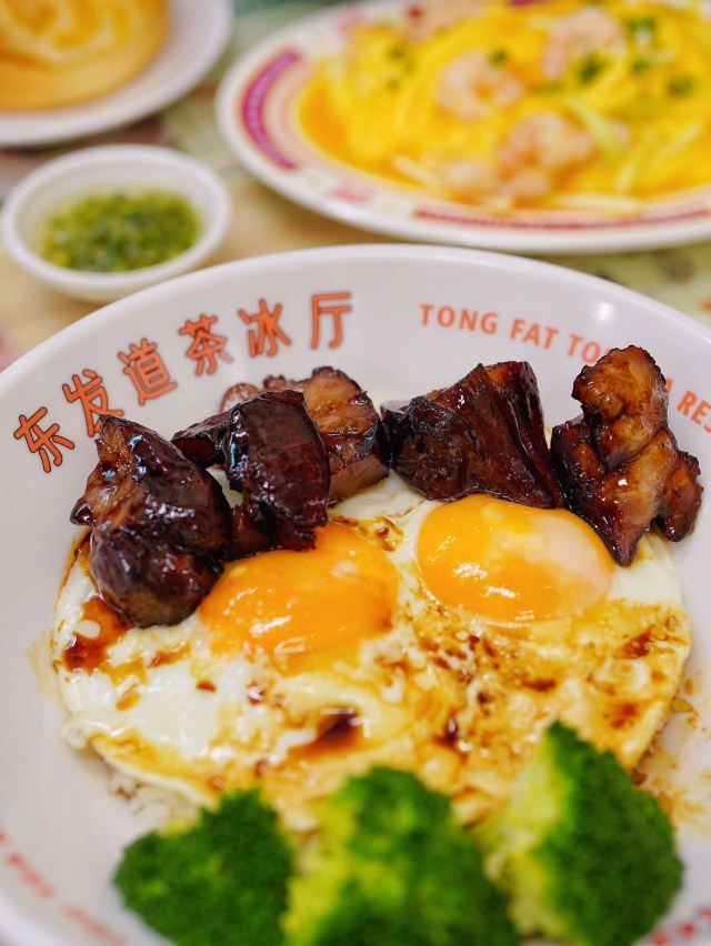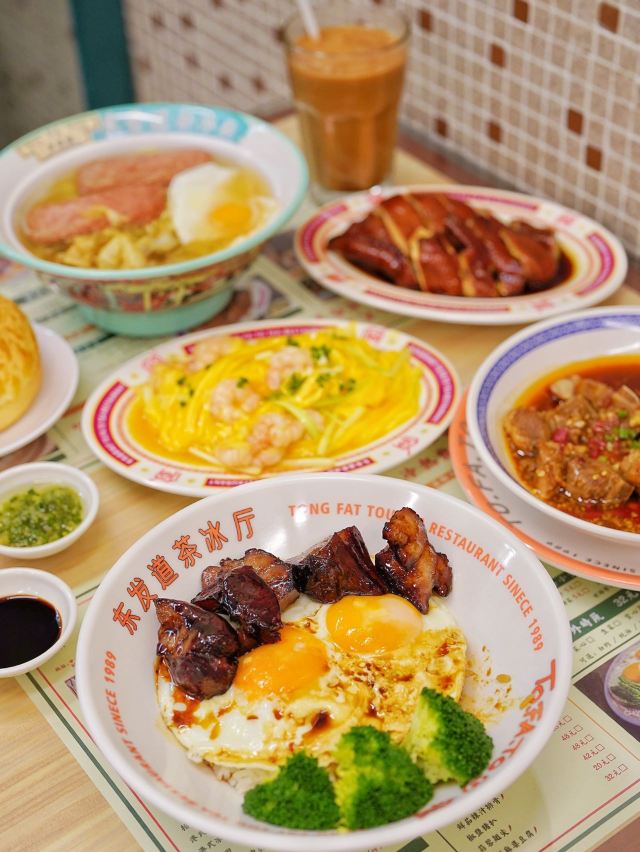 加油干饭呀继东发道环贸mini 店之后,外滩BFC又迎来一股强大的港风势力🇭🇰平、靓、正、精,只有这样的茶冰厅才能赚到我的钱‼️ 🍖蒜蓉辣汁排骨🍖 预先切段腌制的排骨, 经由大火翻炒锁住肉汁,还有蒜蓉辣酱为其注入灵魂,最后放入蒸箱里做个SPA,真是软嫩又多汁💦 🍗蜜汁烤全翅🍗 一整只鸡翅先腌后烤,同时刷上一层蜜汁酱料,焦脆微甜的鸡皮包裹鲜嫩多汁的鸡肉,也难怪,多少人的减肥梦都碎在了茶冰厅💔 🍳厚切叉烧双蛋饭🍳 伊比利亚猪梅肉制成的厚切叉烧,外焦里嫩紧实不柴,溏心双蛋连同米饭搅拌均匀,每一口都把满足感拉满🔝 🐔招牌玫瑰豉油鸡🐔 爽滑鸡皮包裹鲜嫩鸡肉,还有玫瑰豉油汁提色增香,而一旁的灵魂蘸料葱油酱,更是把吃鸡的快乐又提升了一个level📈