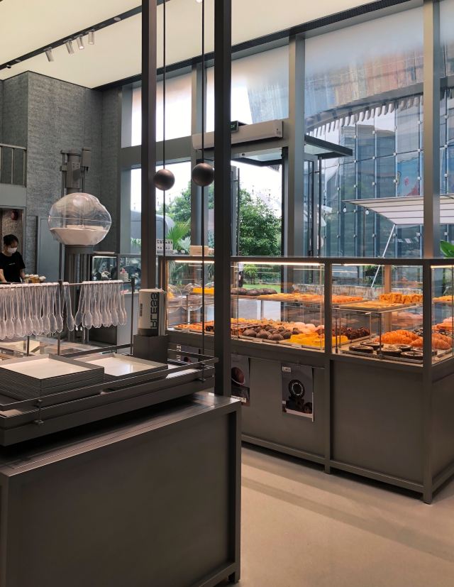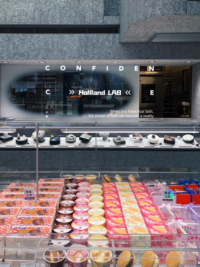 小元元麻麻滴❗️ 面包控来打卡太空主题的Holiland LAB甜品店,就在虹桥天地,LAB仅此一家。 店内风格不同于普通甜品店,这家是银色太空系+实验室风格。橱窗里展出的蛋糕大多是炭灰色系,还有“宇航员”场景。 🍞面包种类很多,30cm长的羊角惊到我了……樱花面包、大理石方块,都是不走寻常路的。 🍌隔着窗户能看到制作室里的“实验过程”,粉色香蕉蛋糕是手工画出来的,感觉很精致,但售价还好。 🏀强烈推荐一下阿华田球,大麦味和阿华田味都好好吃……一定要微波炉热一下,丹麦面包外皮+爆浆奶油,配咖啡☕️很赞。 😋冰柜里还有更多特别的蛋糕甜品,等我再来拔草。冰柜里的都有盒子包装,方便携带。店员打包时都会加冰袋,夏天也不怕。 📌坐标:上海虹桥天地L1户外长廊 🏠地址:上海市闵行区申长路688号 🚇交通:地铁2/10/17号线虹桥火车站D出口 🅿️停车:8元/时,会员200积分抵扣1小时,每天最高抵扣4小时。