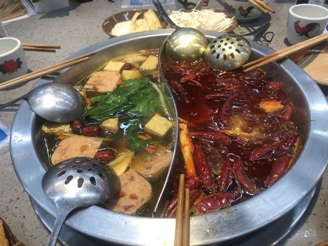amydog人间烟火,生活如沸🍹 2020-8-24 人间烟火,生活如沸🍹 二刷鸿姐(首刷还没来得及发⭕) 艾小米就有把重庆老火锅吃成了糖水铺的本事[嘿哈]巴特,鸿姐的糖水真心"歡喜",自制龙眼水也是真好喝,以后路过绝对应该来一杯或者来一碗,那么辣的火锅就算了😆 【口味】 |自制龙眼水^10,盛夏绝对适合来一杯,价格不贵,货真价实 |蛋炒饭^5,艾小米单方面宣布,这是魔都火锅店里蛋炒饭天花板,真的太好吃,就是哈林哥唱的那种蛋炒饭,配料丰富,不会油腻,一端上来就是香味扑鼻,尤其还有那个会增加食欲的小饭碗 |醪糟冰汤圆^10,之前没吃过这种,其实就是酒酿里放汤圆,冰冰的,一碗下去好饱 |小酥肉^28,艾小米吃过的所有重庆火锅店里小酥肉,都好好吃😂 |红糖冰粉^打卡送的 【环境】 没有去过山城的艾小米不晓得重庆是什么样,总体感觉就像在厂房里吃火锅,空旷热闹,很有意思,大堂那是非常大,旁边一圈小鸽笼里都是小桌,布置得非常有特色,很喜欢 【服务】 小姐姐很可爱也是活泼,店里生意非常好,但还是一直会记得客人的要求,仔仔细细地上菜,这么高强度下还是耐心满满,爱死了 2020年的时候,鸿姐绝对是要排好几个钟头的网红店,可以想象这大厅坐满人声鼎沸的市井模样 抱紧小伙伴的霸王腿,起飞✈️