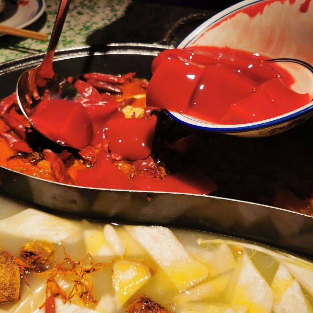 红红火火。就是他家的火锅啦,传承数10年的老料。这口浓香红油锅爱了。 还有他家特色的香菜丸子,真的是非常好吃哦。 新鲜的鸭血真的是口感超棒,一份都不够哦。