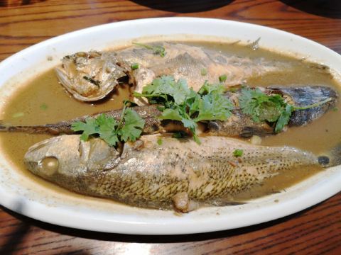 住在曹妃岛酒店,距离小镇300米左右,于是中餐和晚餐都在这里解决。 中餐:家常炖海杂鱼,大拌菜,峨眉豇豆烧茄子,花仁菠菜,家常饼,花费137元。 晚餐:椒盐花生米,干炸小黄鱼,三杯鸡,芥兰山药木耳,家常炒饼,,啤酒2瓶,花费138元。