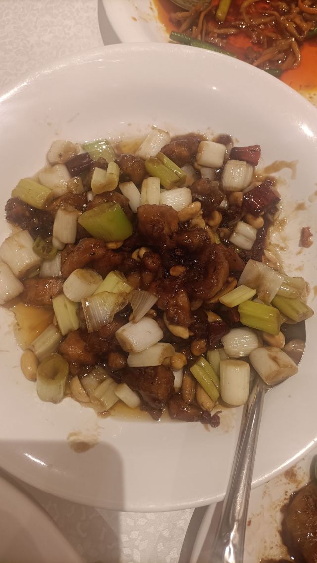 点了一桌子菜,就这一个(宫保鸡丁)是一口没吃,第一口甜甜的,包裹鸡肉的像淀粉放多了粘粘的。跟服务员说,人家说料汁一直就是这样做的,无语加失望。
