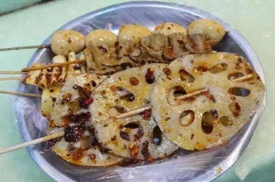 鹌鹑蛋,香肠,蟹肉棒,豆皮,藕片,土豆,牛肉片,海带,毛肚梗,鸭肠,君把,麻辣串,鱼皮,豆干,苕皮,鱼丸,平菇,绿豆沙,牛筋,绿豆汤